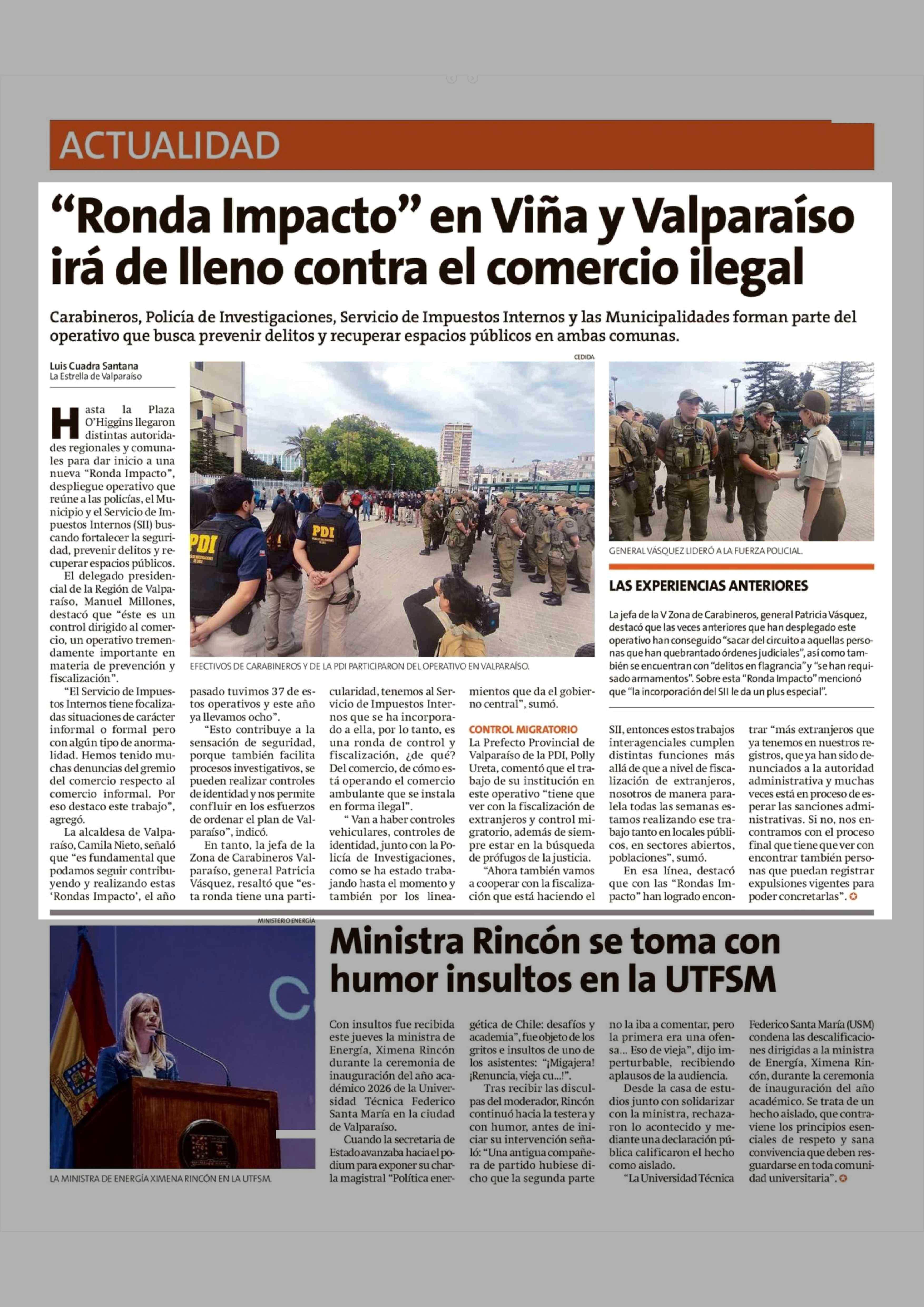 "Ronda Impacto" en Vina y Valparaíso irá de lleno contra el comercio ilegal 17-04-2026 La Estrella de Valparaíso |