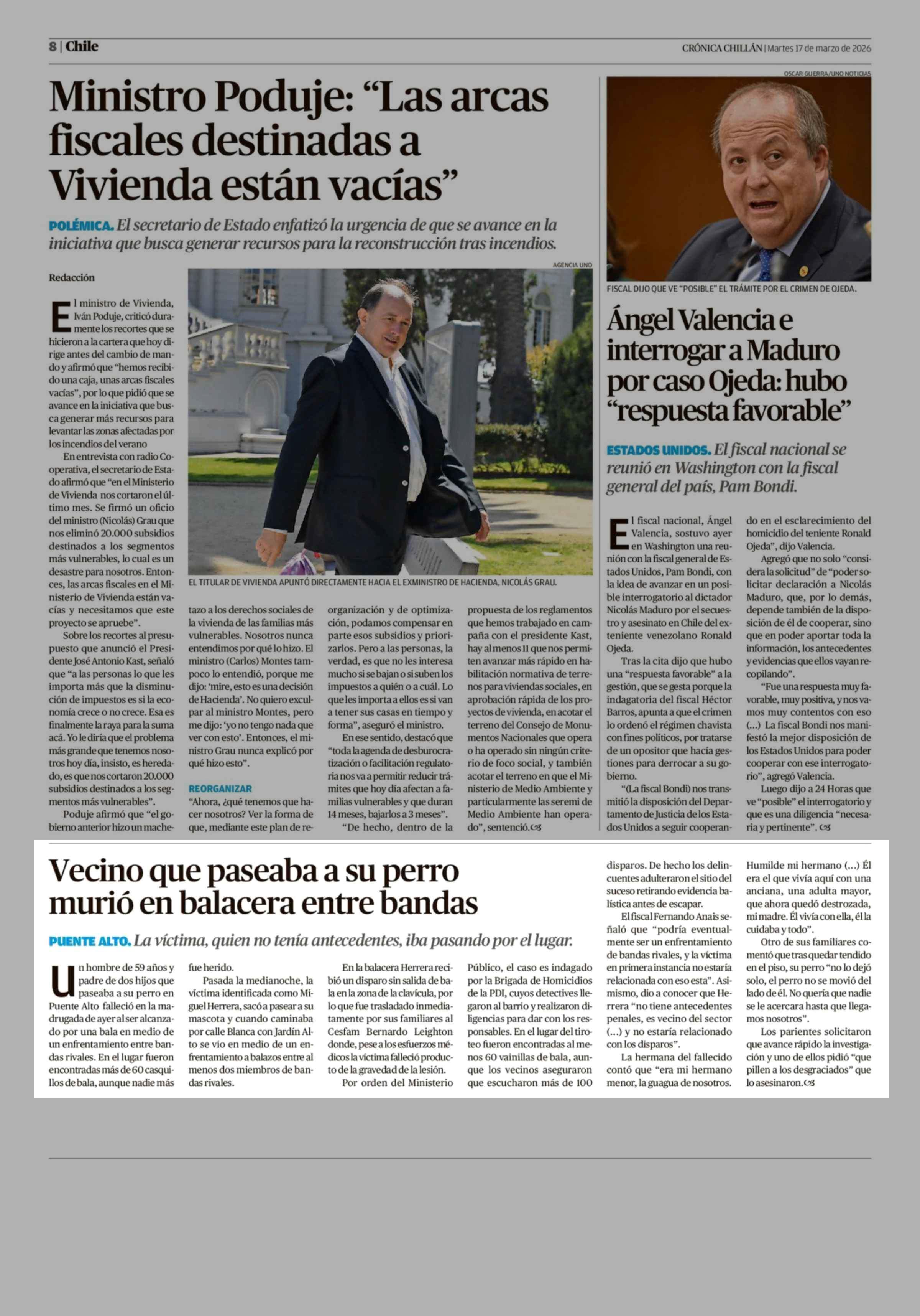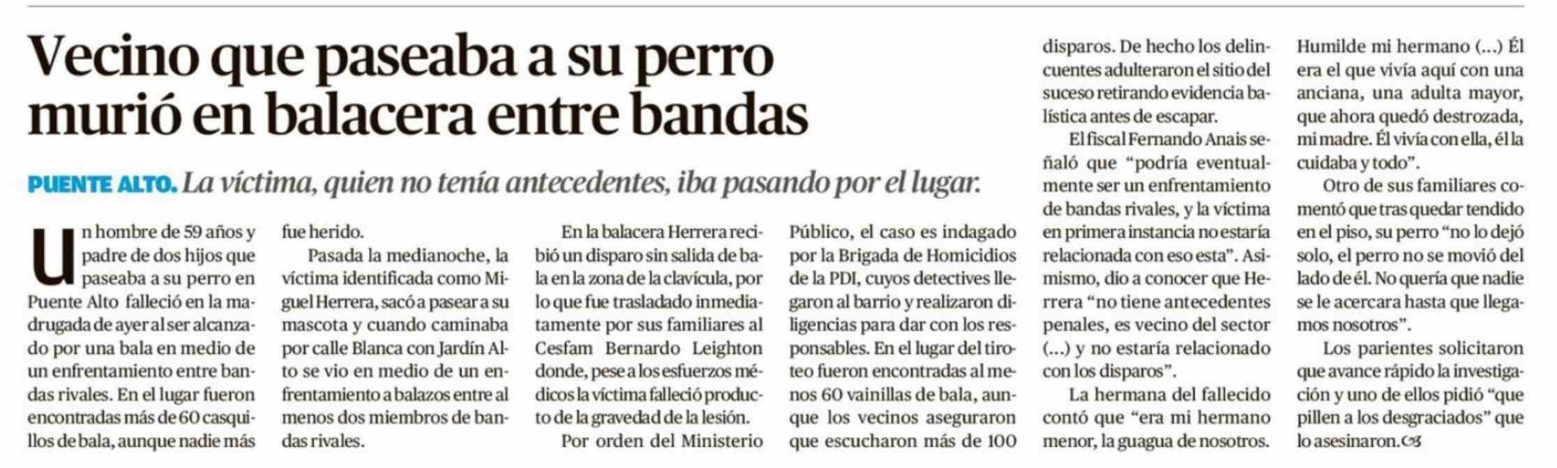 Vecino que paseaba a su perro murió en balacera entre bandas 17-03-2026 Crónica de Chillán |