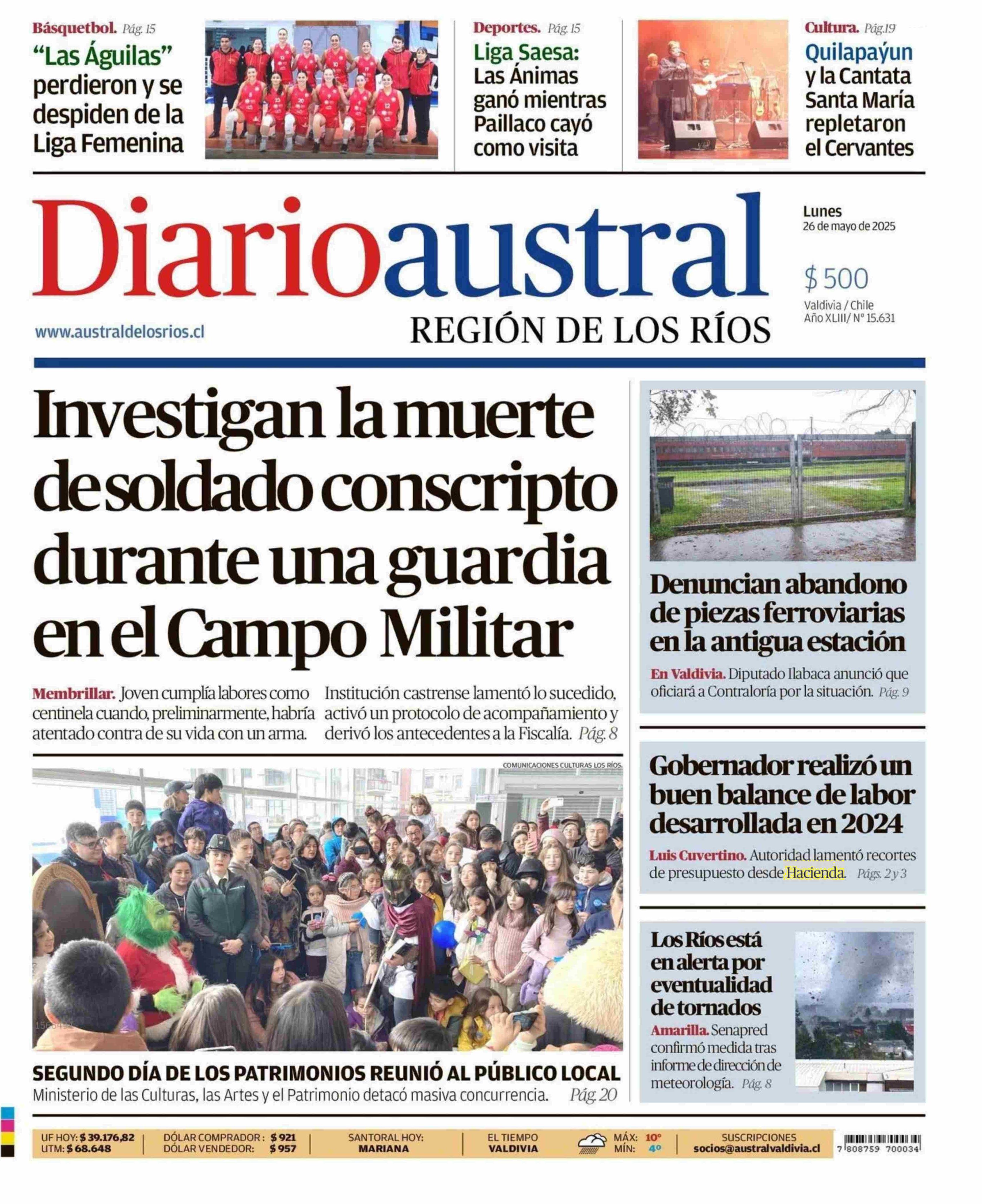 PORTADA EL AUSTRAL DE LOS RÍOS - CHILE 26-05-2025 Diario Austral Región de Los Ríos |