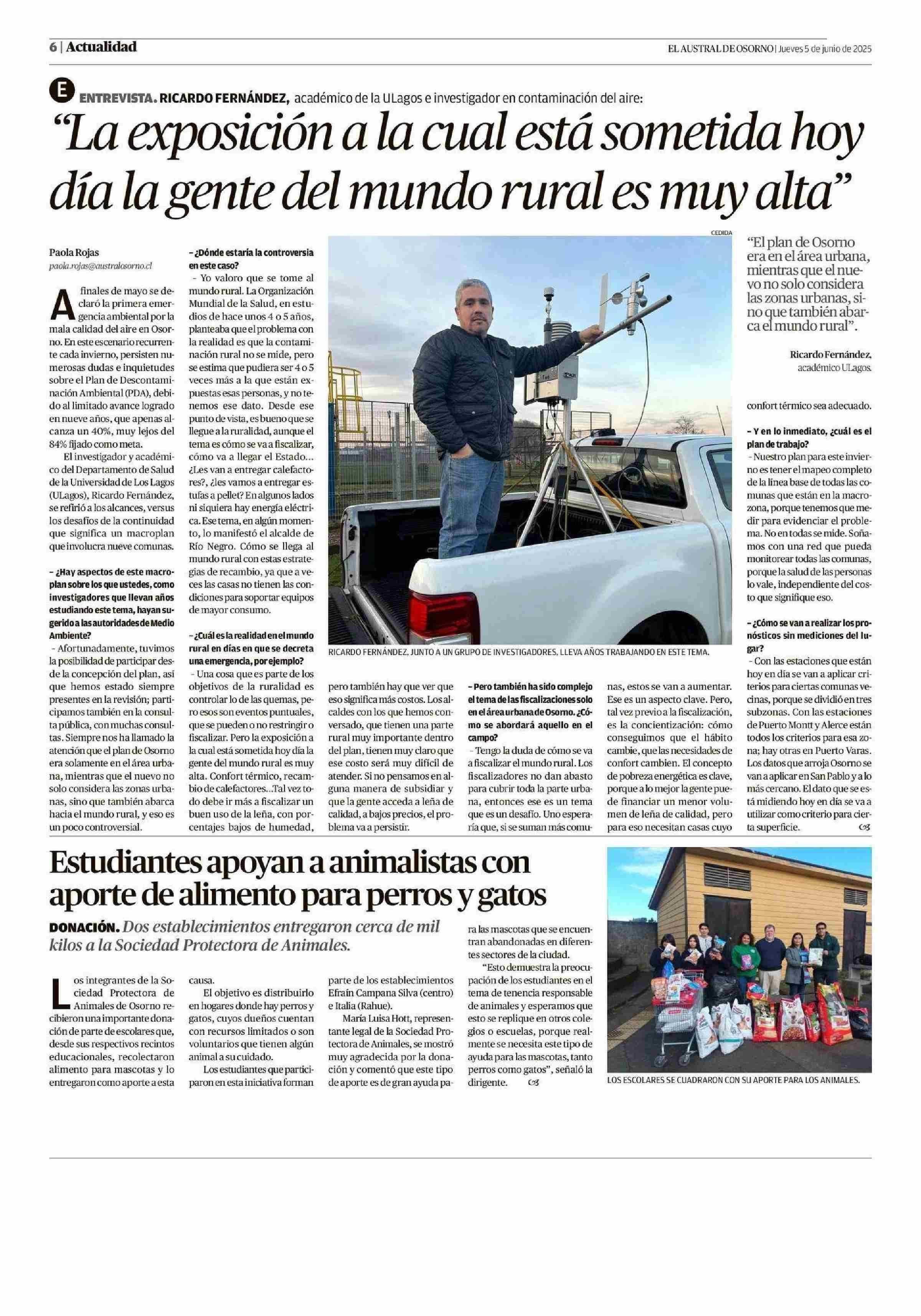 "La exposición a la cual está sometida hoy día la gente del mundo rural es muy alta" 05-06-2025 El Austral de Osorno |