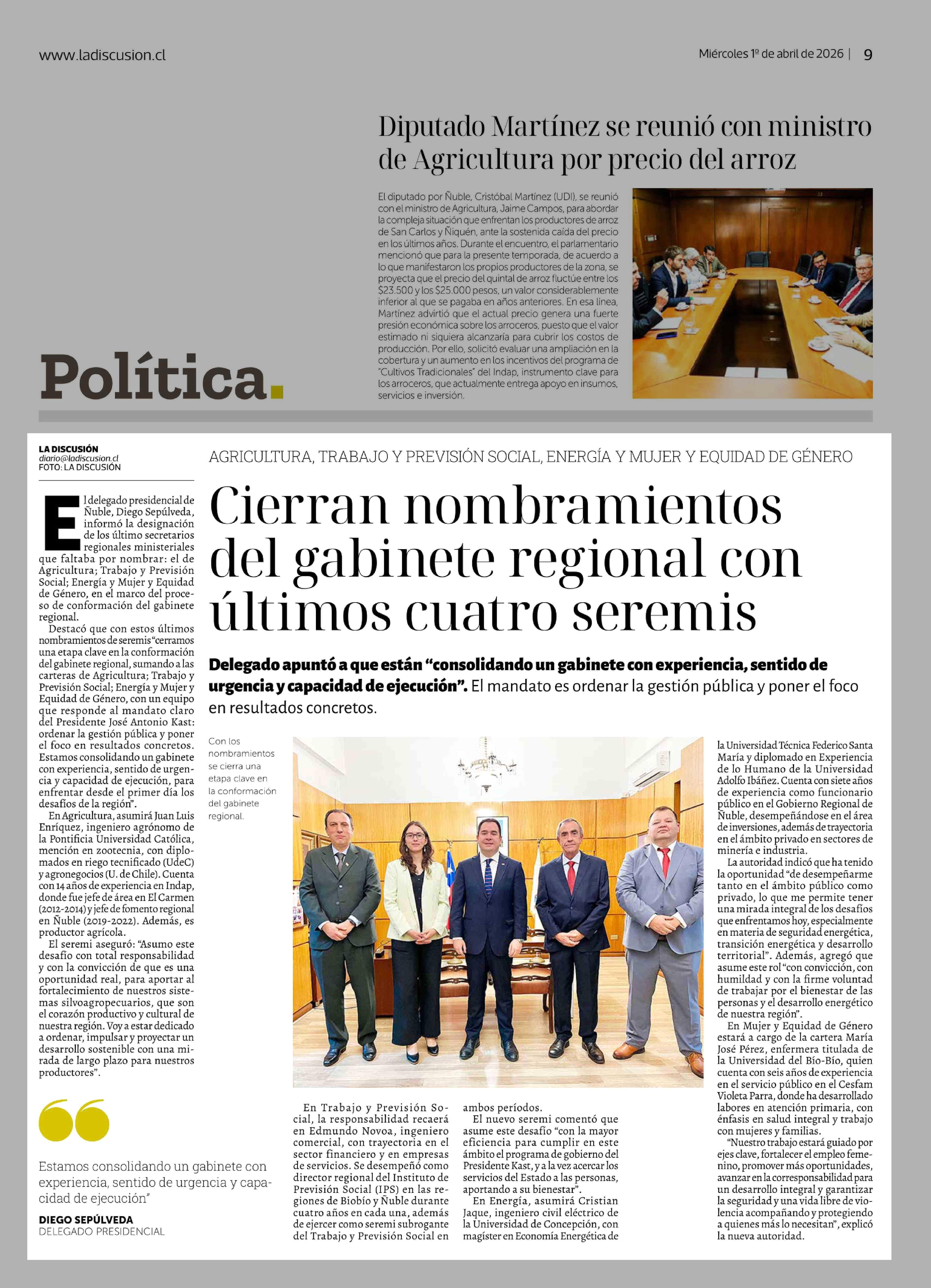 Fecha: 01-04-2026 Sector: Noticia general Región: Región del Ñuble