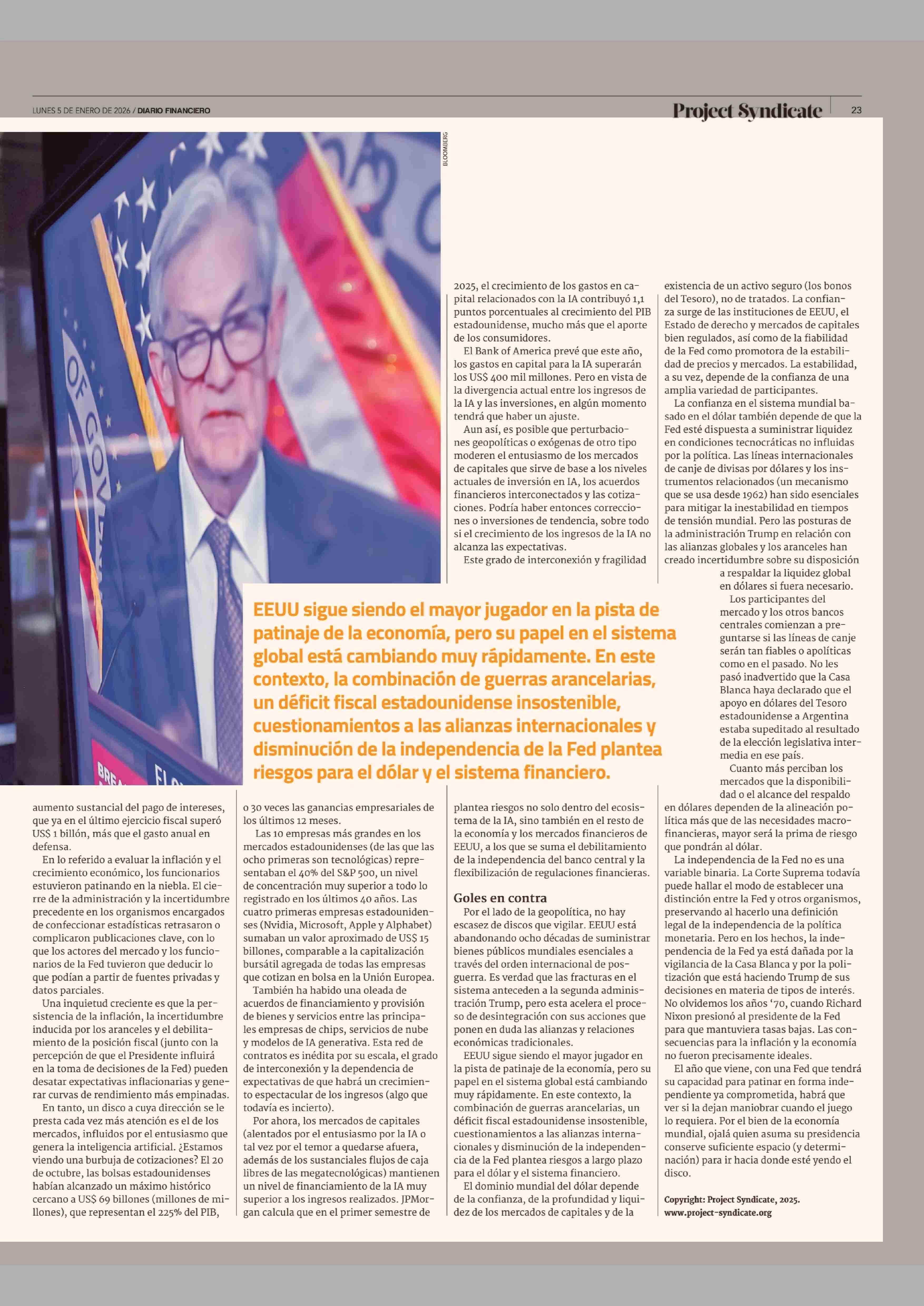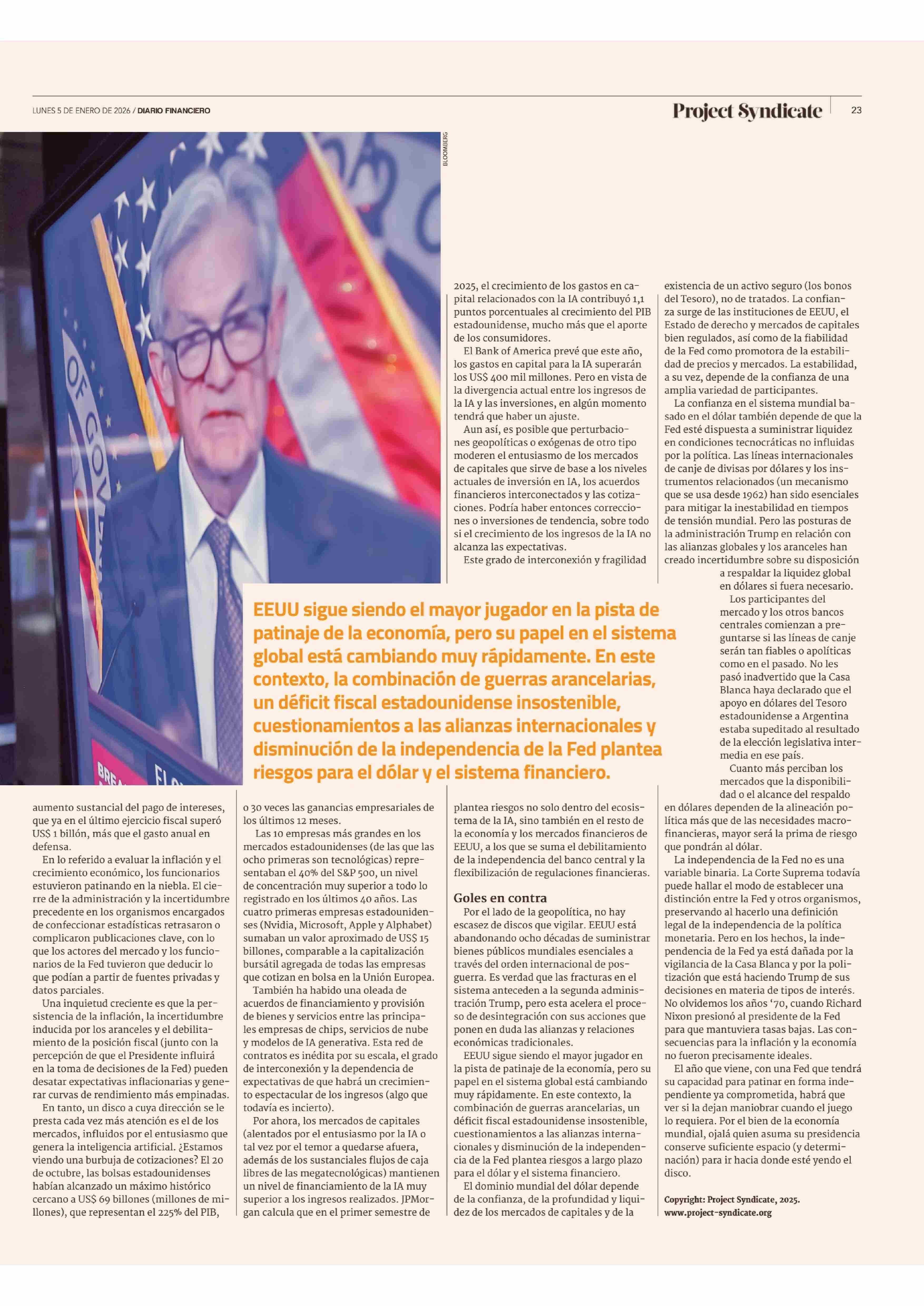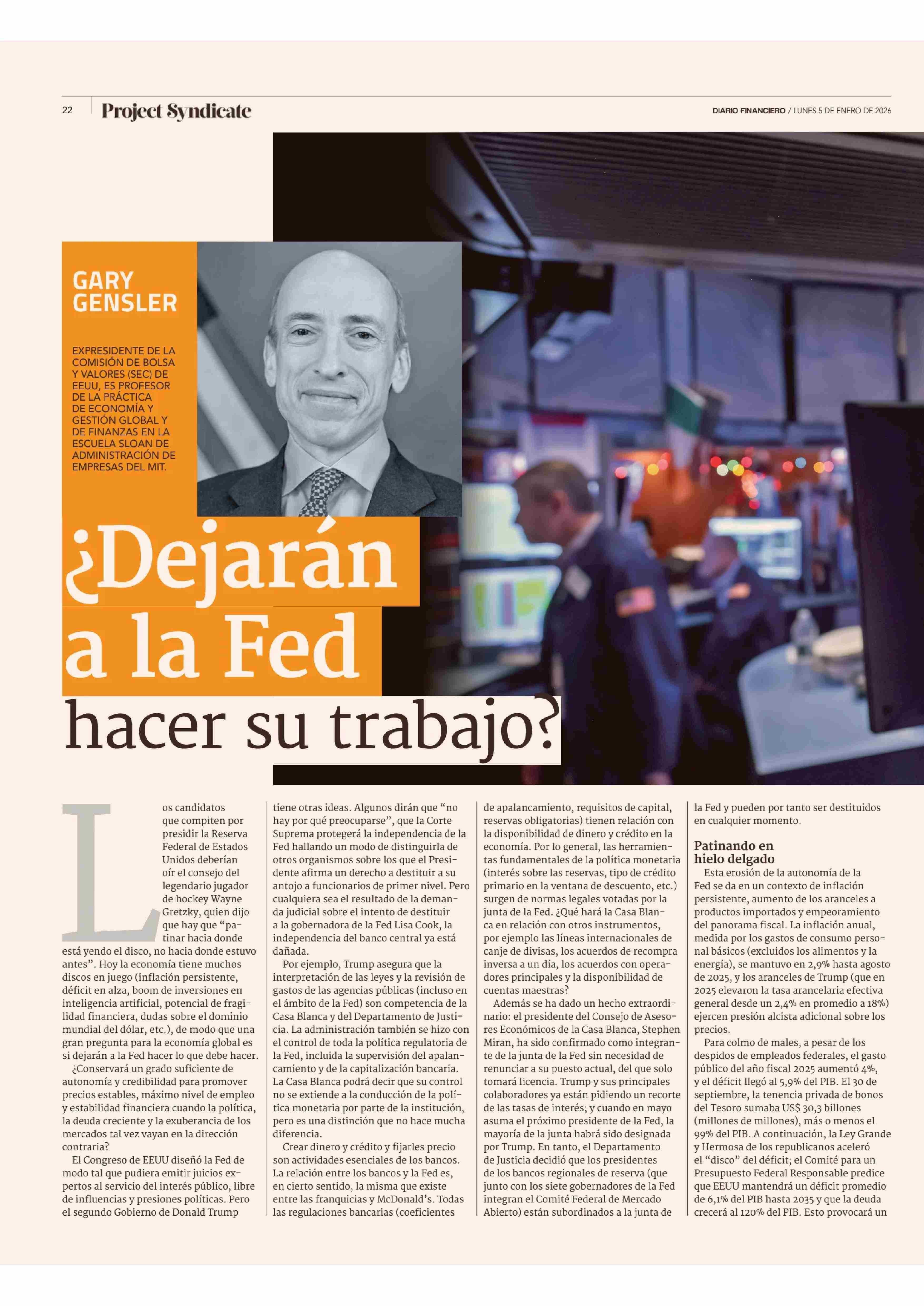 ¿Dejarán a la Fed hacer su trabajo 05-01-2026 Diario Financiero |