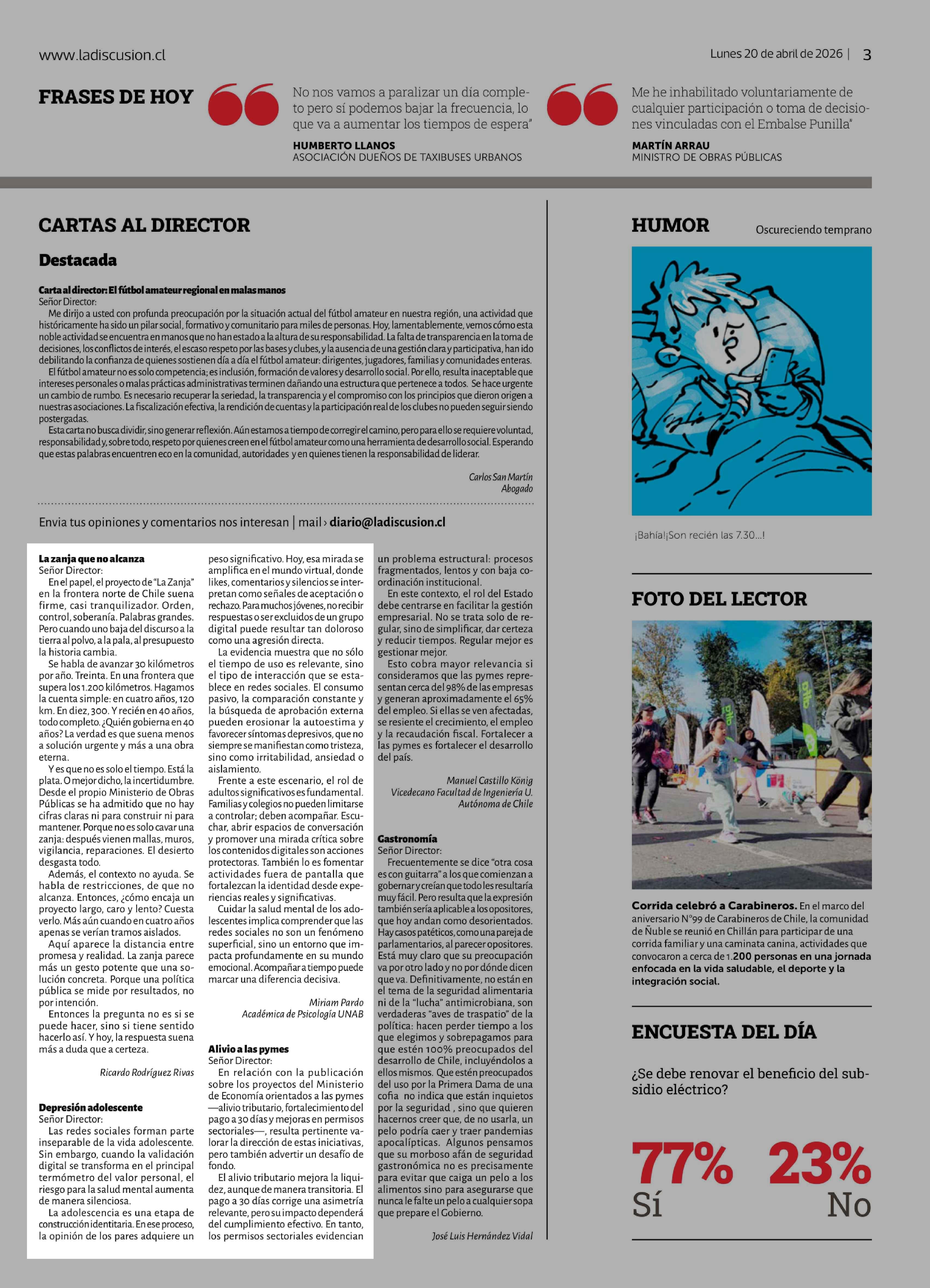Cartas: Depresión adolescente 20-04-2026 La Discusión |