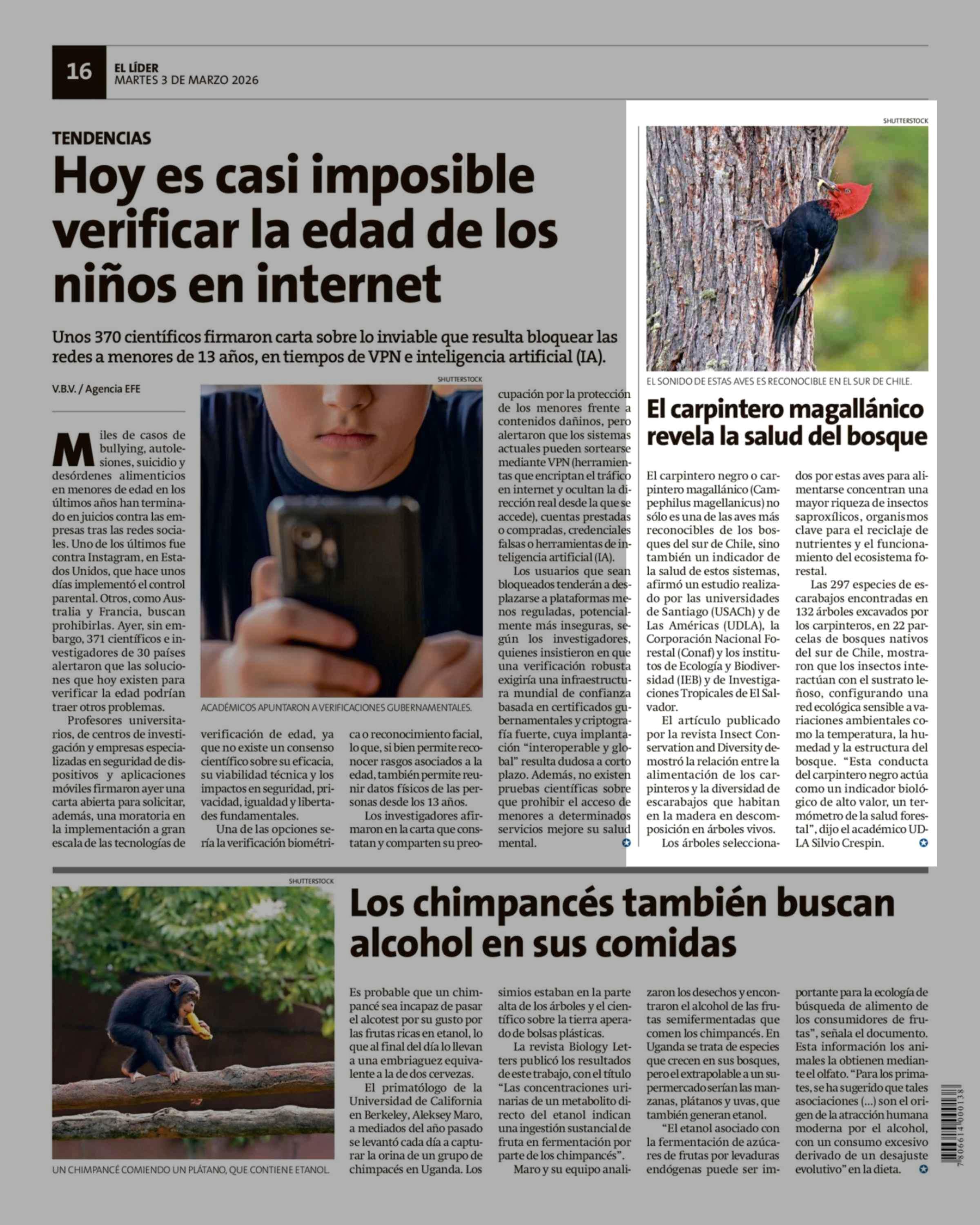 El carpintero magallánico revela la salud del bosque 03-03-2026 El Líder |