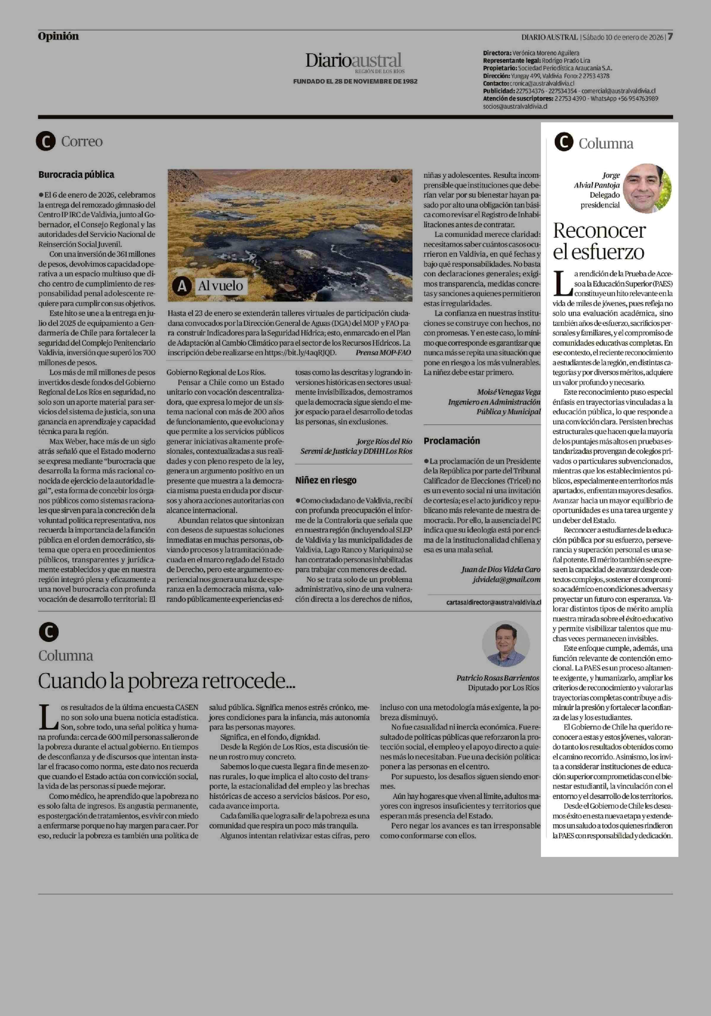 Fecha: 10-01-2026 Sector: Columnas de Opinión Región: Región de Los Ríos