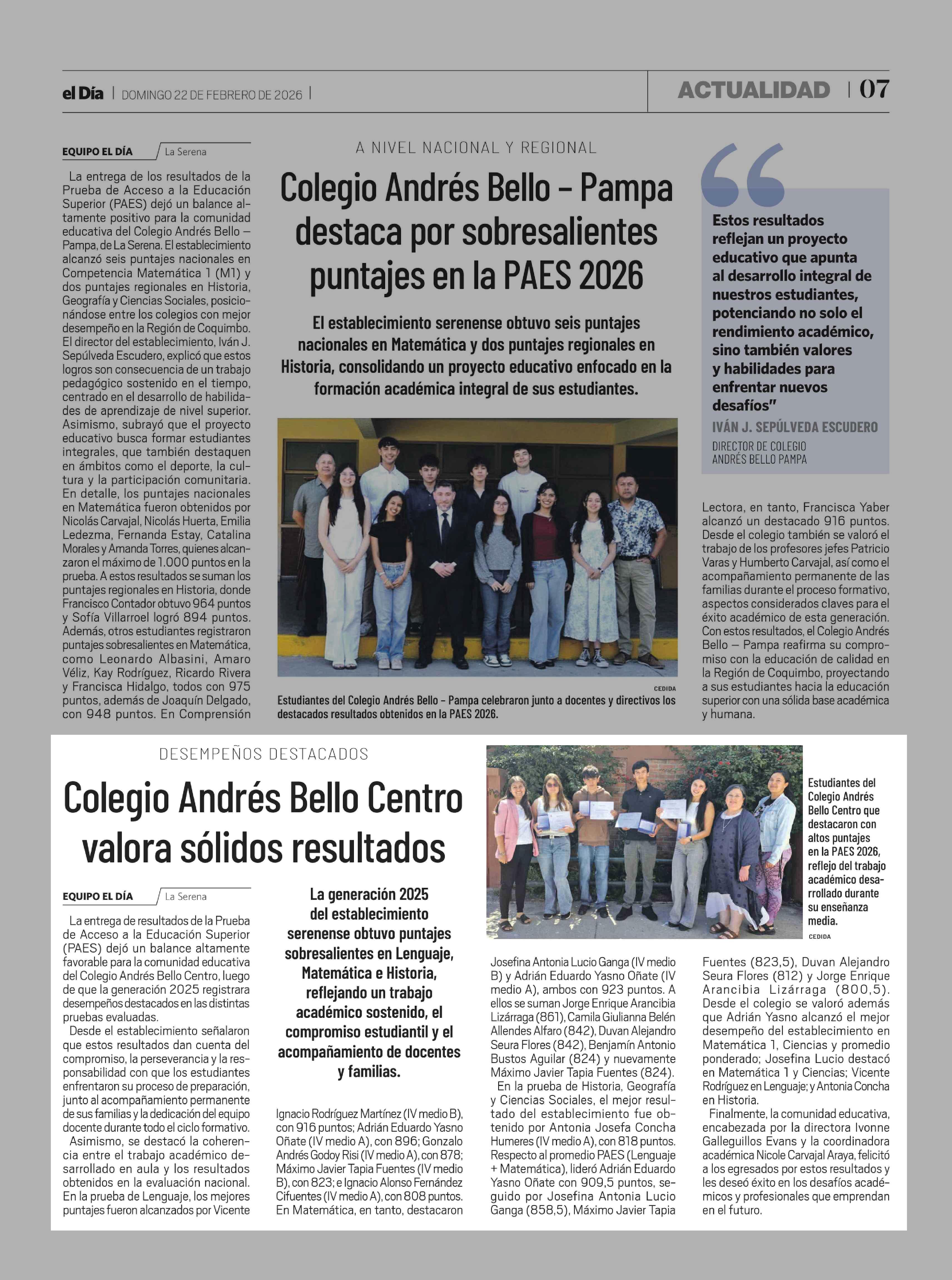 Título: Colegio Andrés Bello Centro valora sólidos resultados