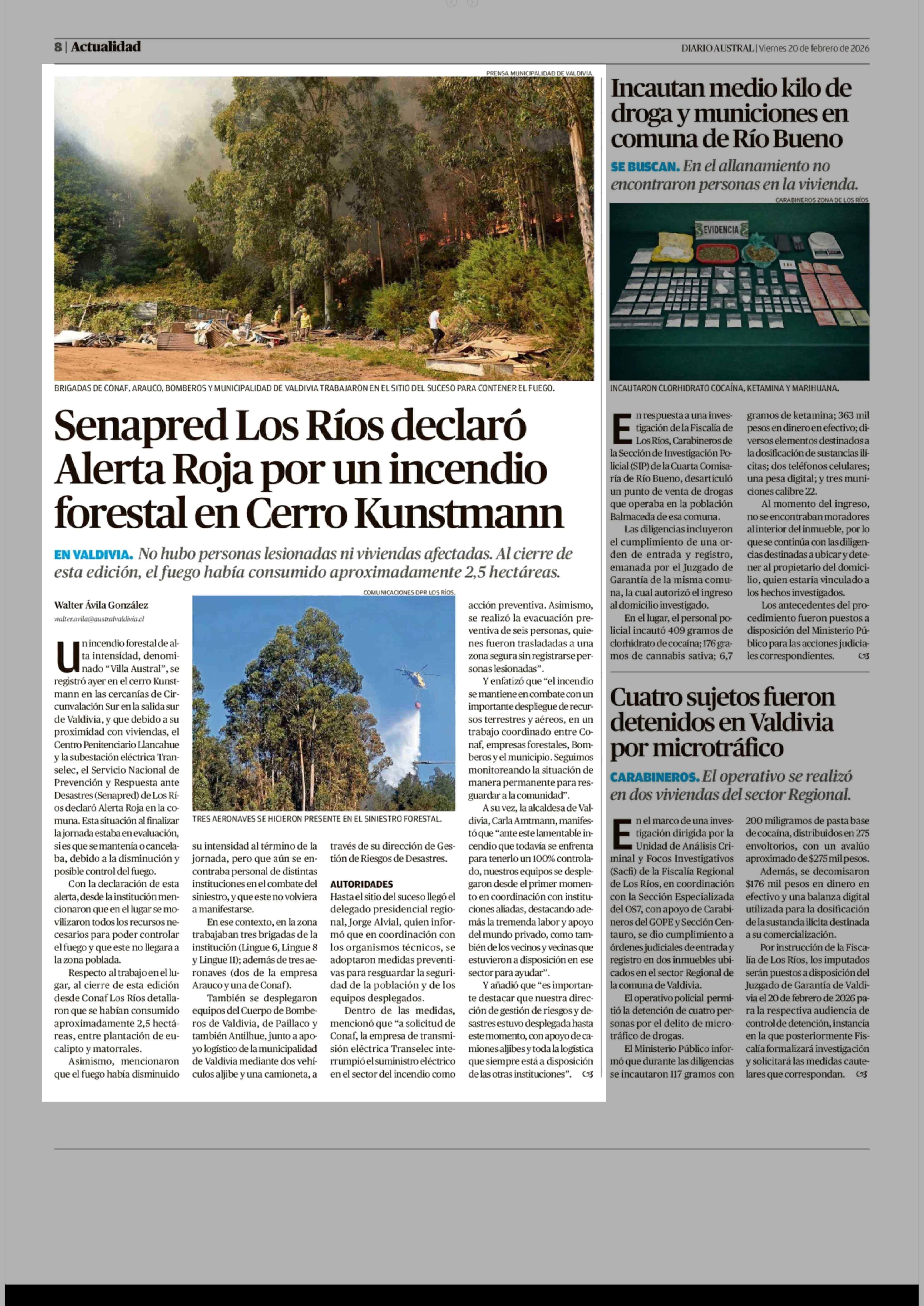 Fecha: 20-02-2026 Sector: Noticia general Región: Región de Los Ríos