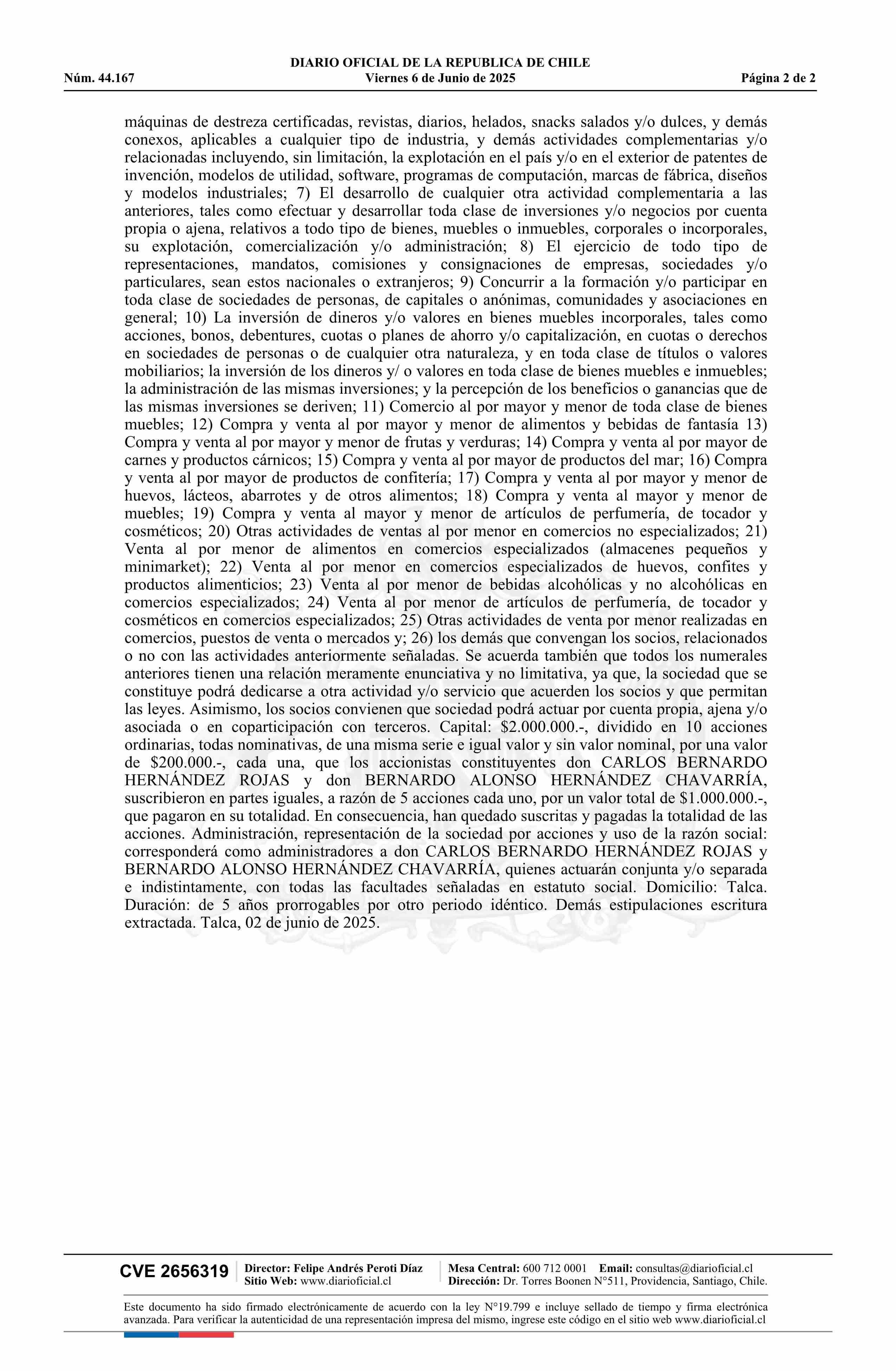 Título: COMERCIALIZADORA HERNÁNDEZ SpA
