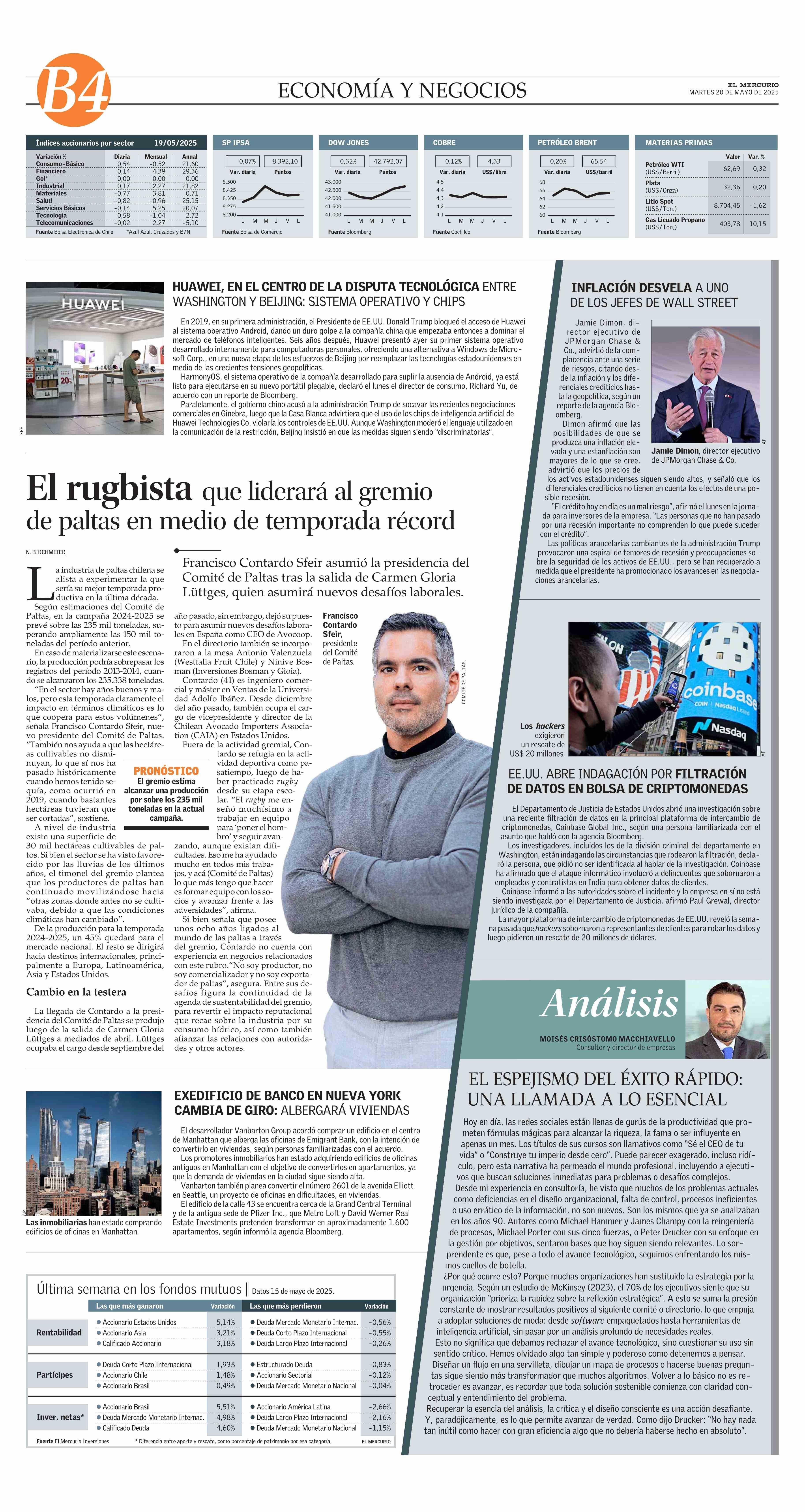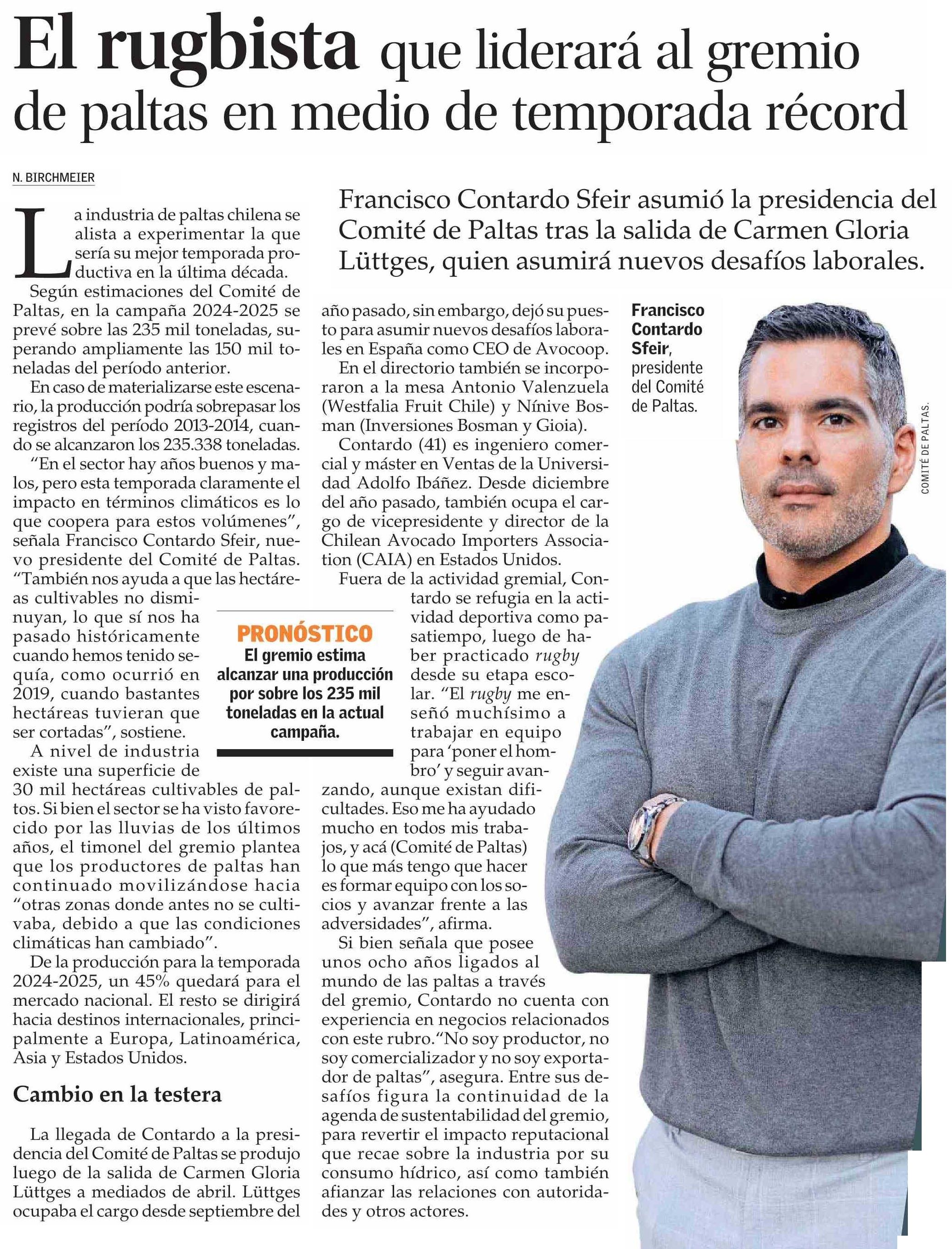 El rugbista que liderará al gremio de paltas en medio de temporada récord 20-05-2025 El Mercurio |