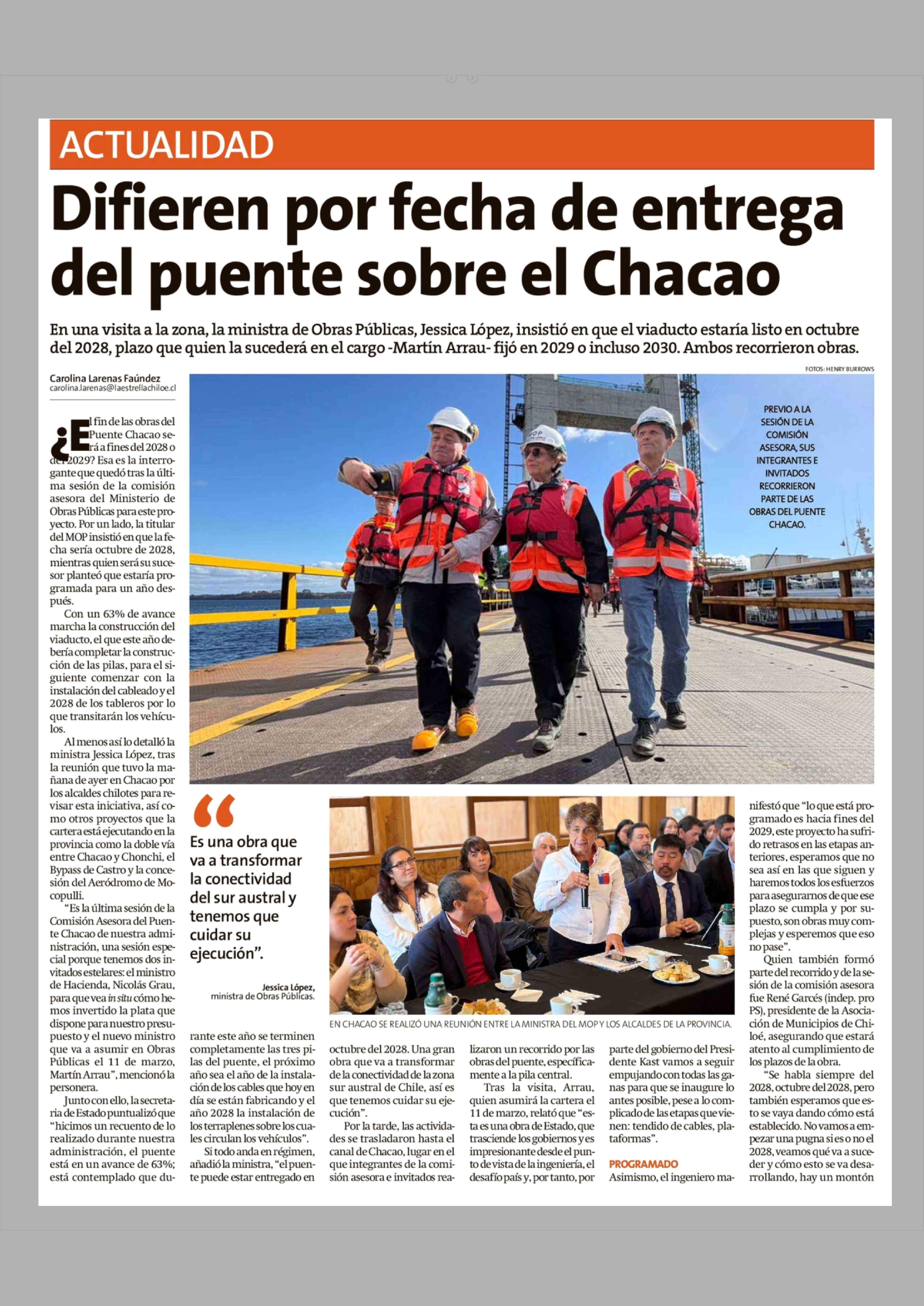 Difieren por fecha de entrega del puente sobre el Chacao 24-02-2026 La Estrella de Chiloé |