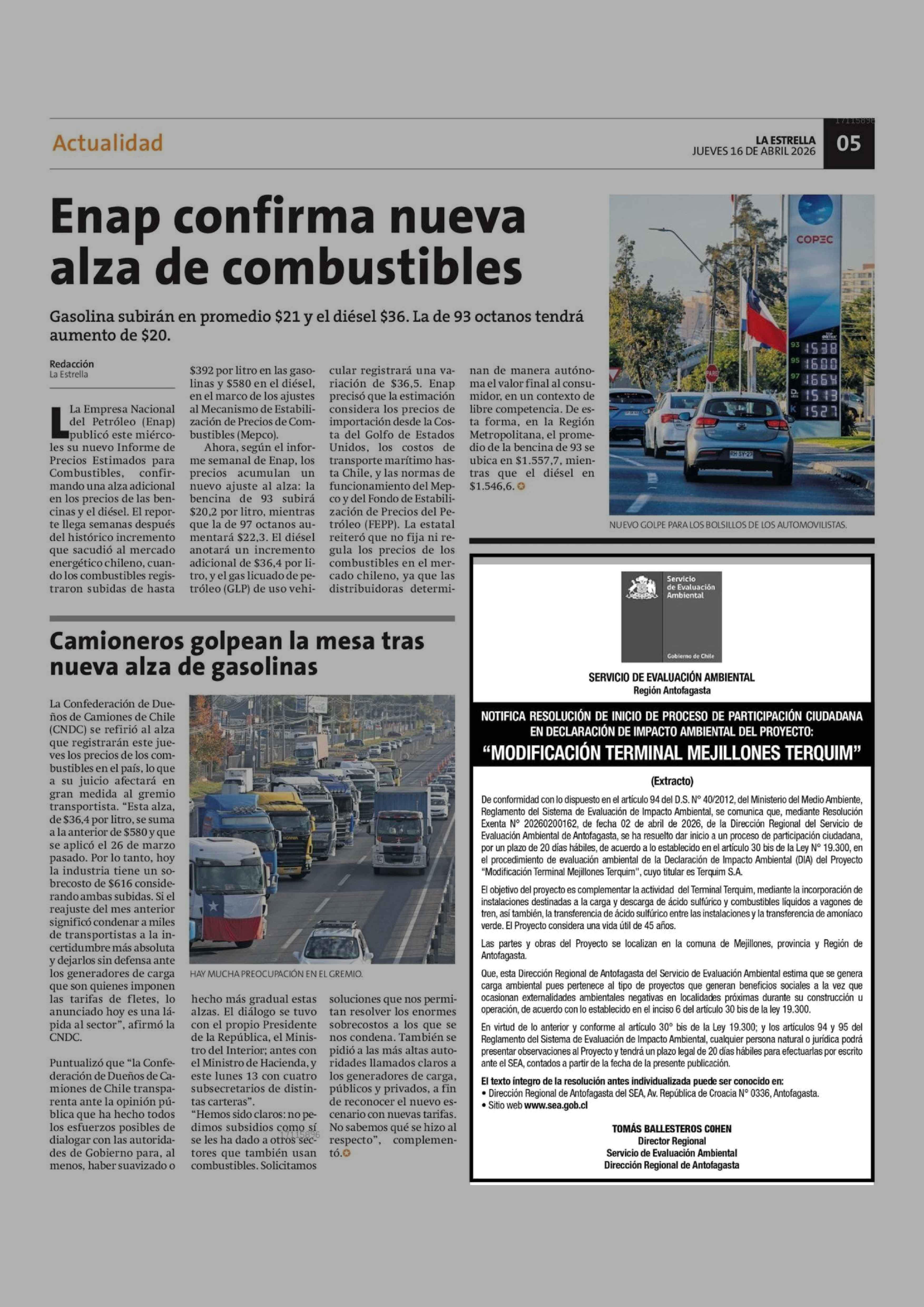 | Fecha: | 16-04-2026 | Sector: | Extractos | Región: | Región de Antofagasta |