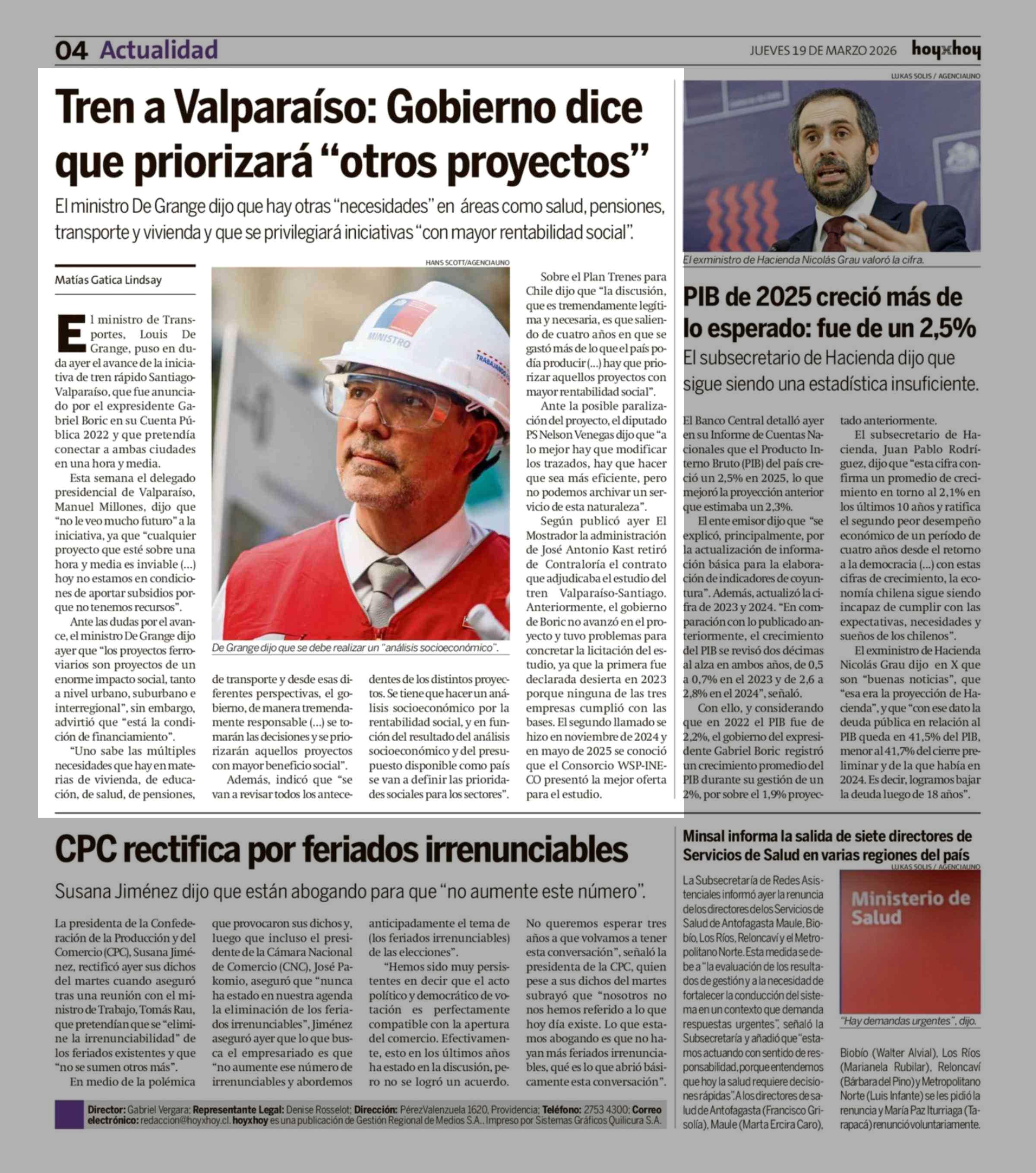 Tren a Valparaíso: Gobierno dice que priorizara "otros proyectos" 19-03-2026 Hoy x Hoy |