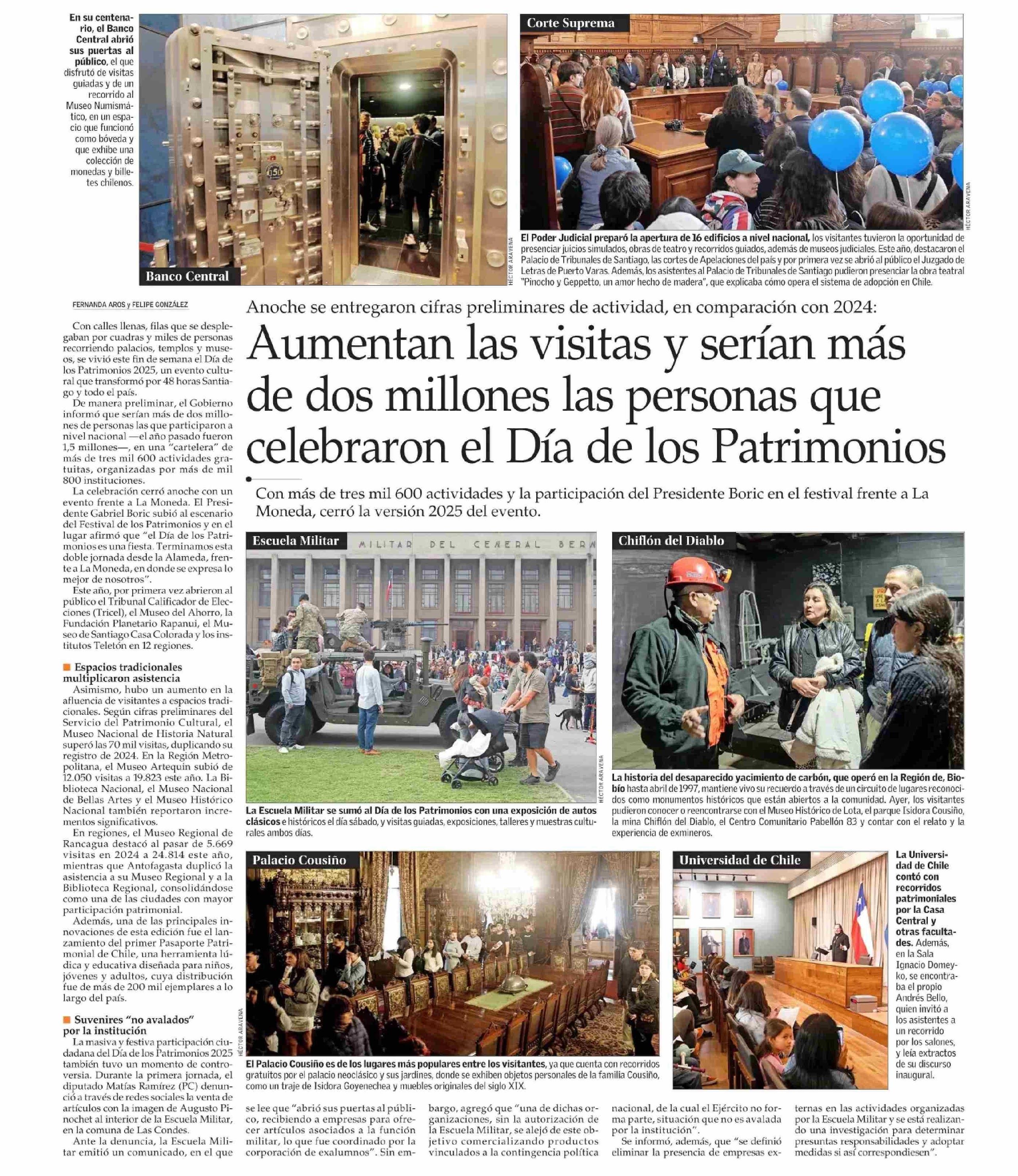 Aumentan las visitas y serían más de dos millones las personas que celebraron el Día de los Patrimonios 26-05-2025 El Mercurio |