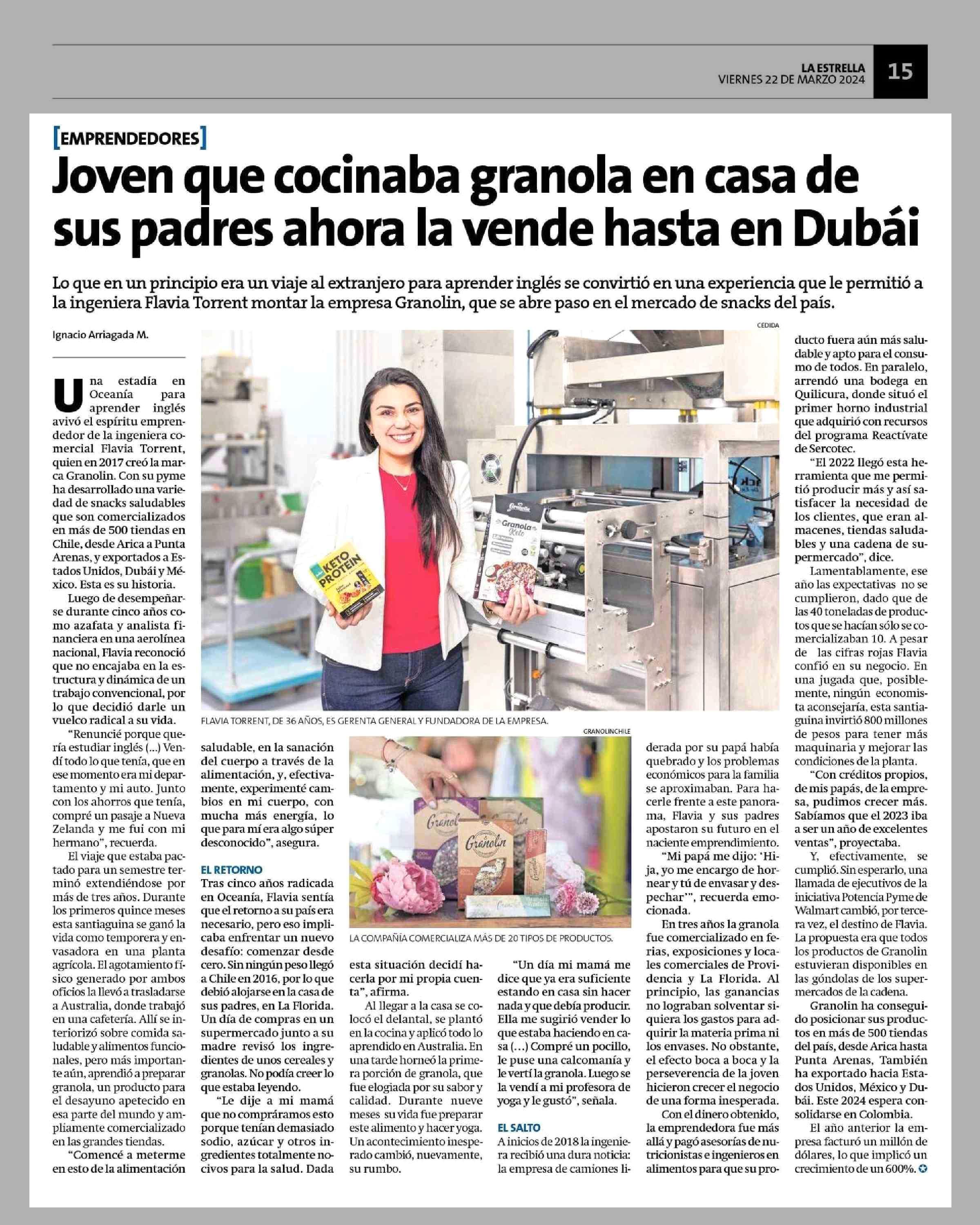 Joven que cocinaba granola en casa de sus padres ahora la vende hasta en Dubái 22-03-2024 La Estrella de Concepción |
