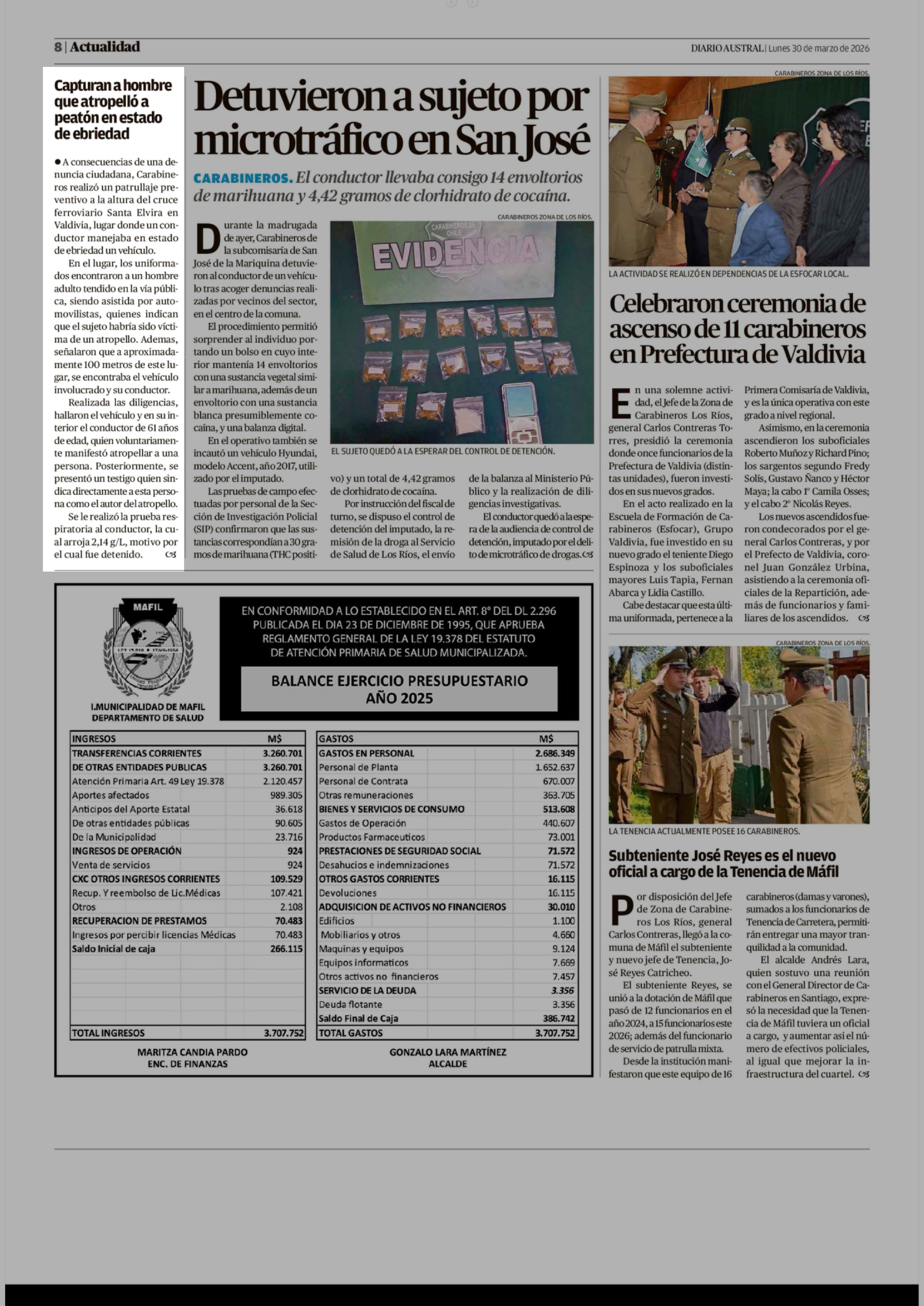 | Fecha: | 30-03-2026 | Sector: | Noticia general | Región: | Región de Los Ríos |