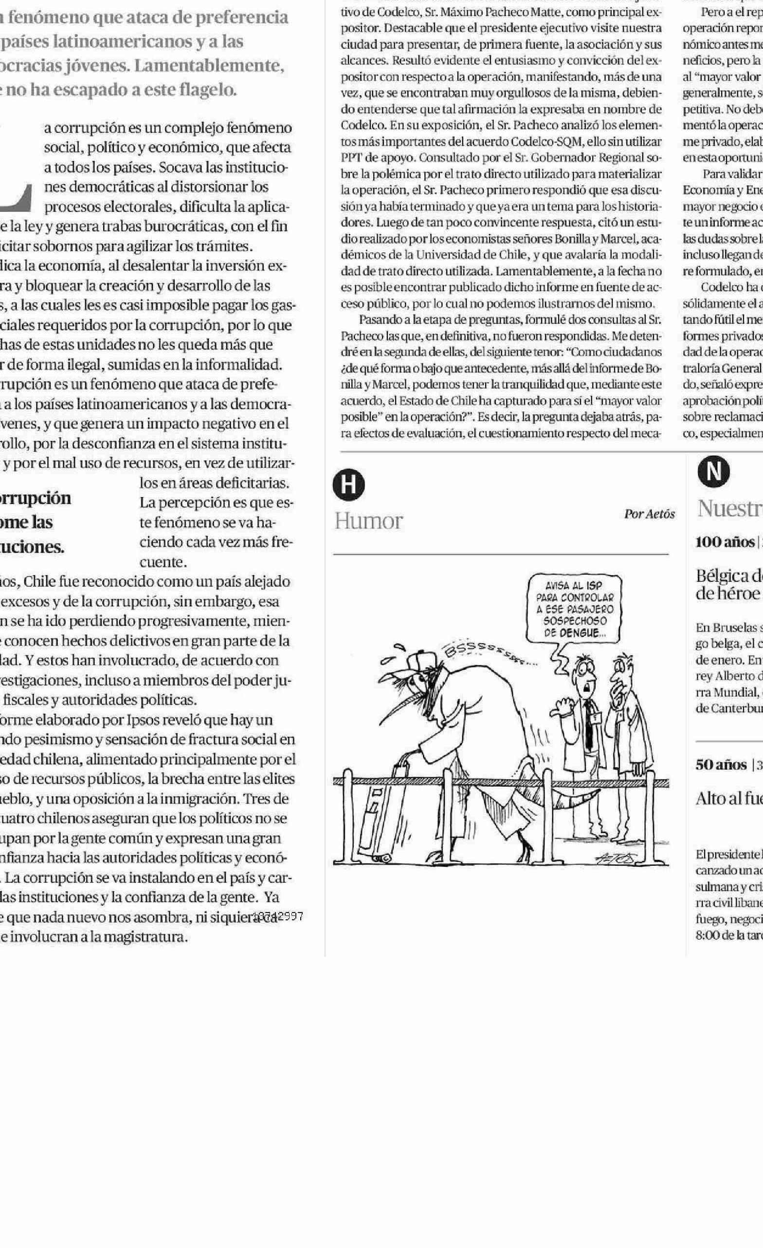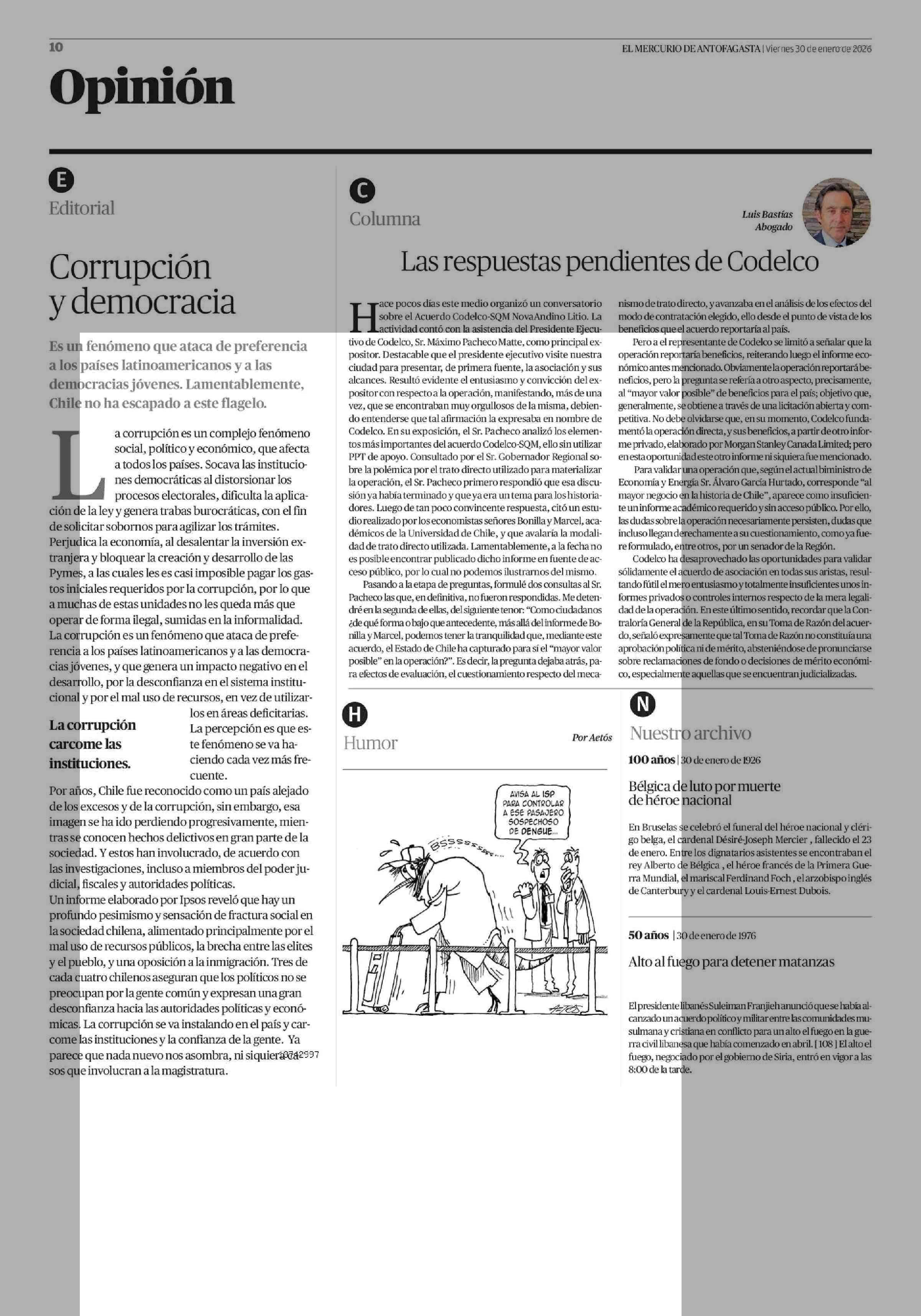 Editorial: Corrupción y democracia 30-01-2026 El Mercurio de Antofagasta |
