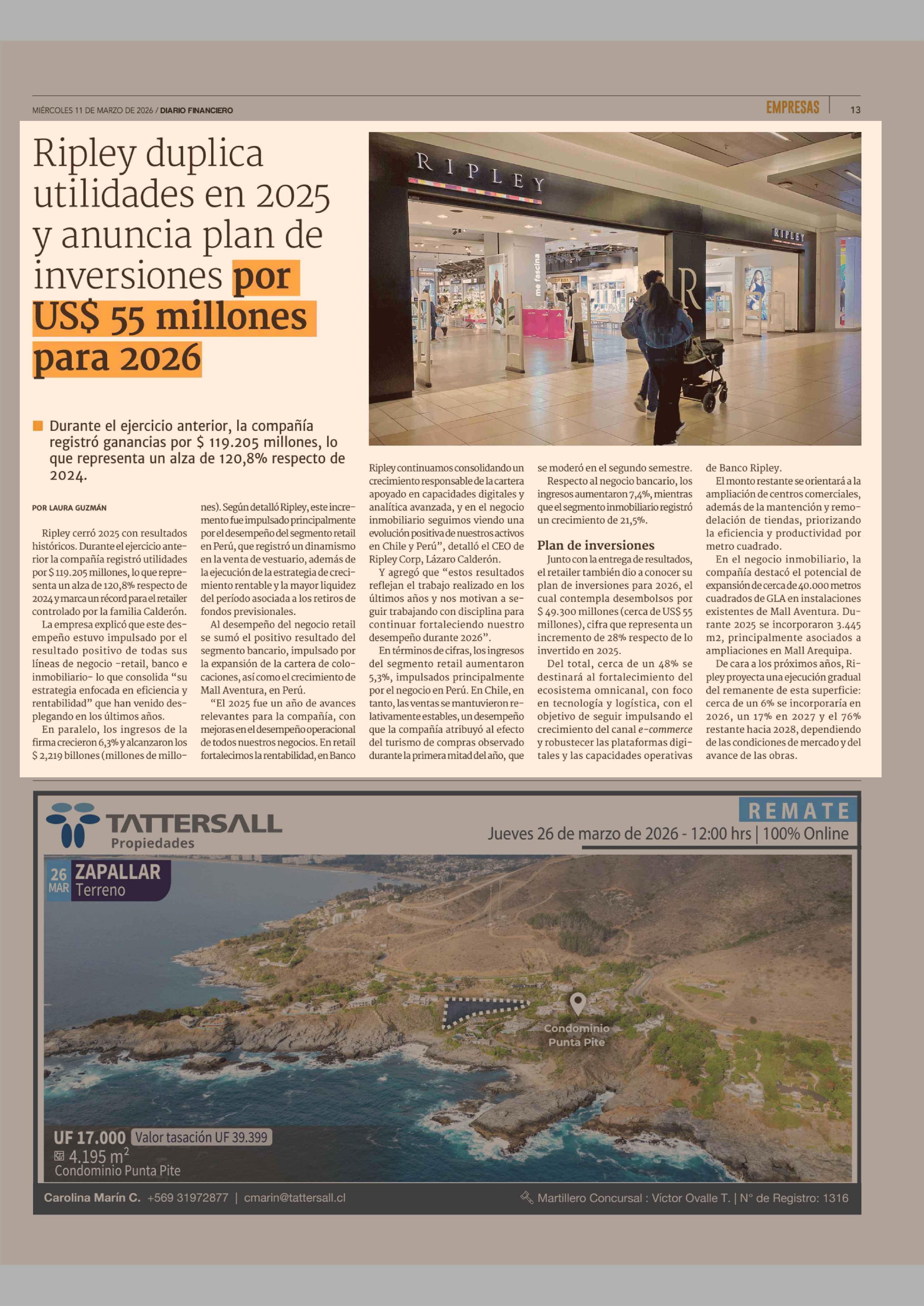 Título: Ripley duplica utilidades en 2025 y anuncia plan de inversiones por US$ 55 millones para 2026