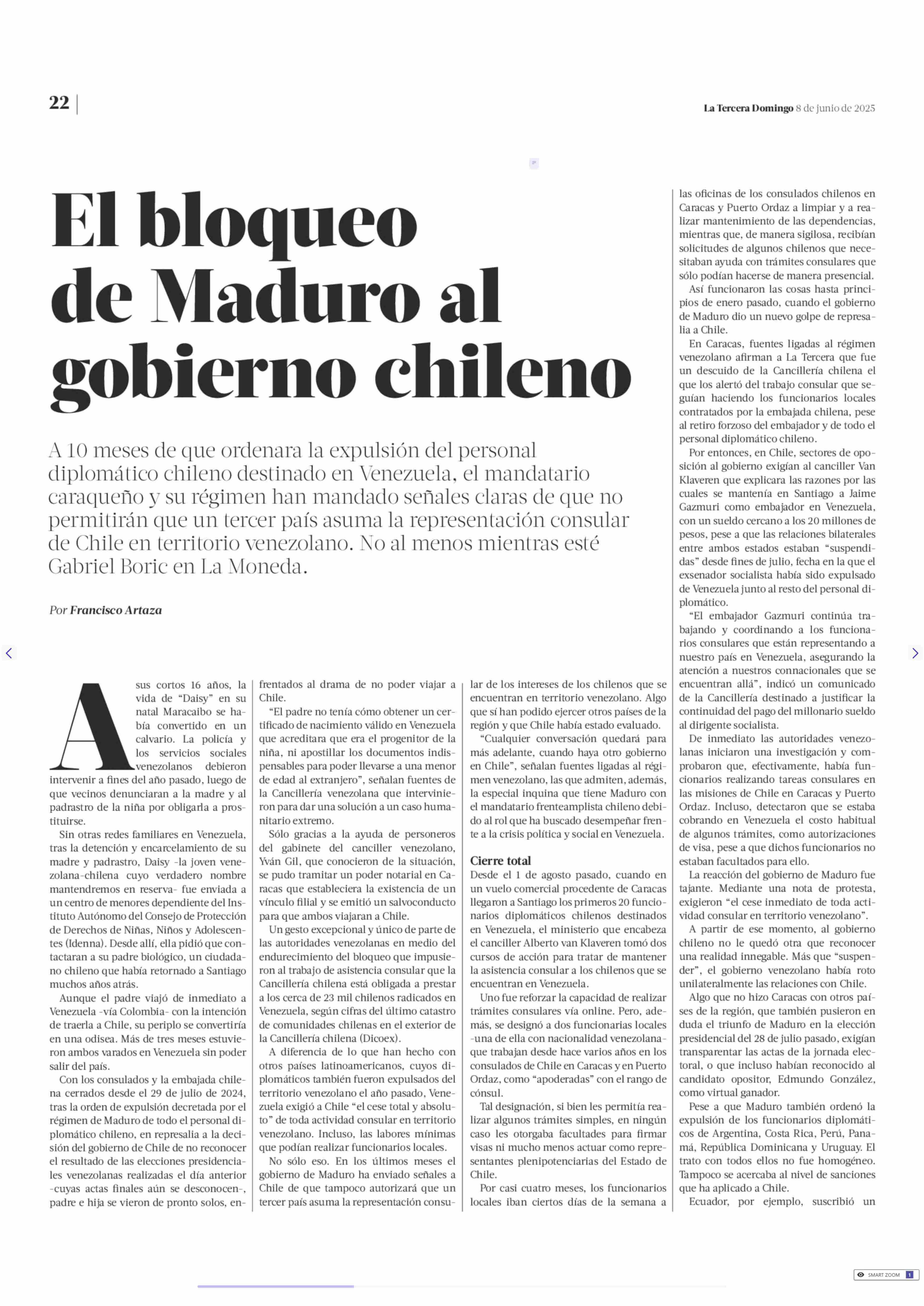 El bloqueo de Maduro al gobierno chileno 08-06-2025 La Tercera |