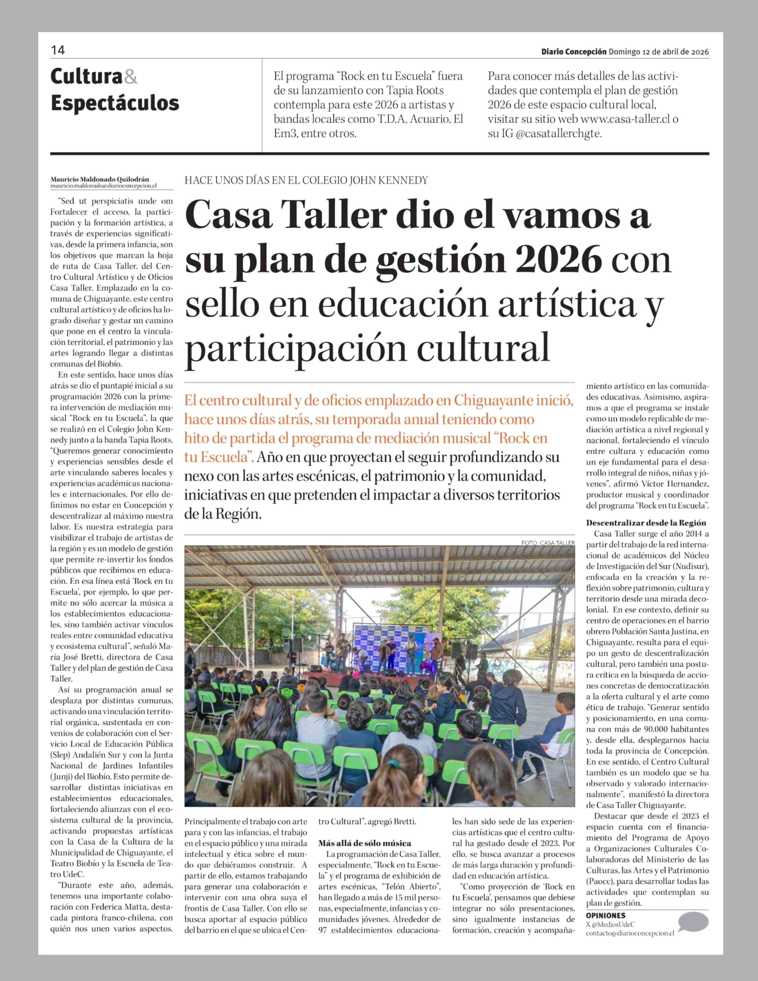 Casa Taller dio el vamos a su plan de gestión 2026 con sello en educación artística y participación cultural 12-04-2026 Diario Concepción |