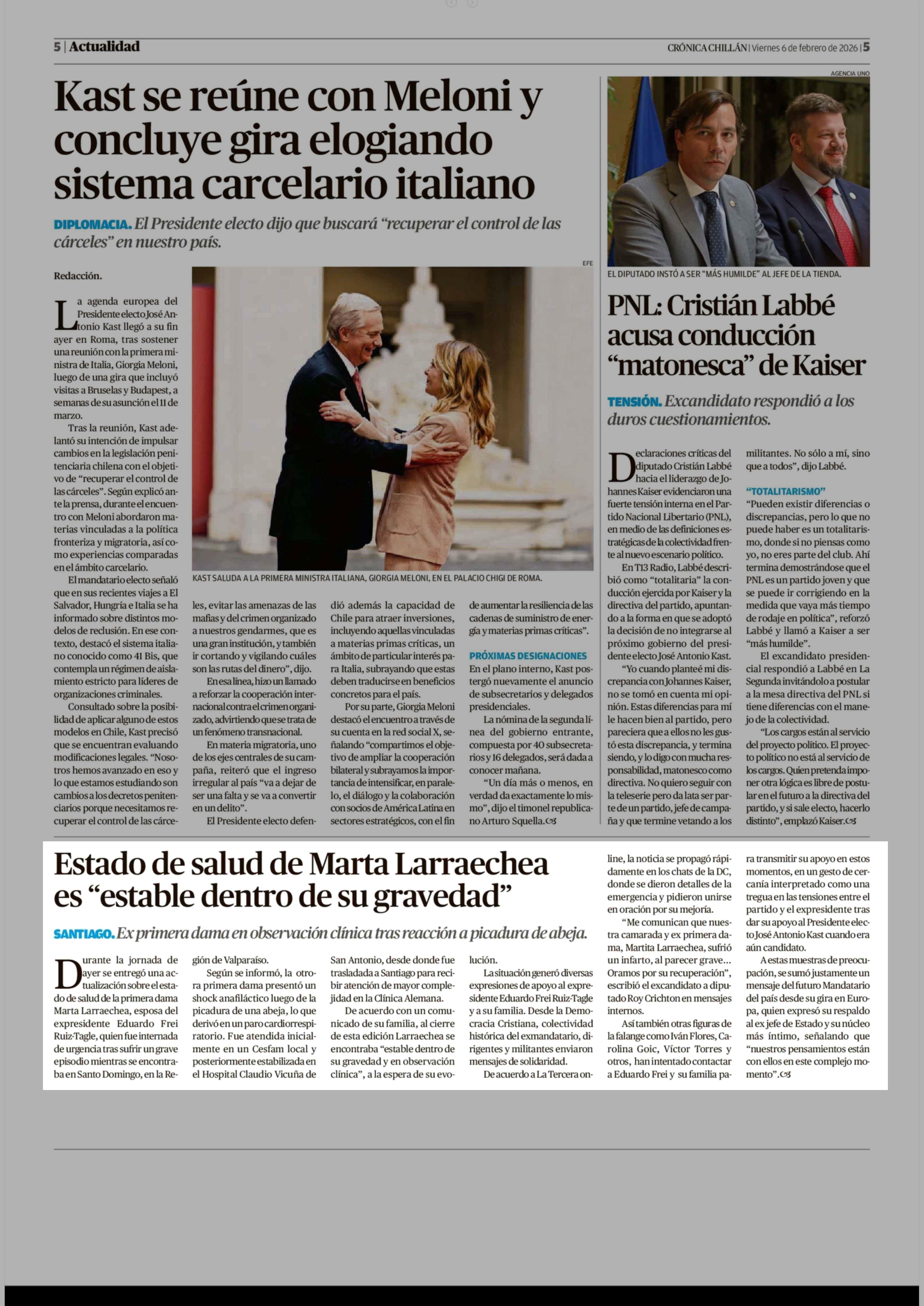 Estado de salud de Marta Larraechea es "estable dentro de su gravedad" 06-02-2026 Crónica de Chillán |