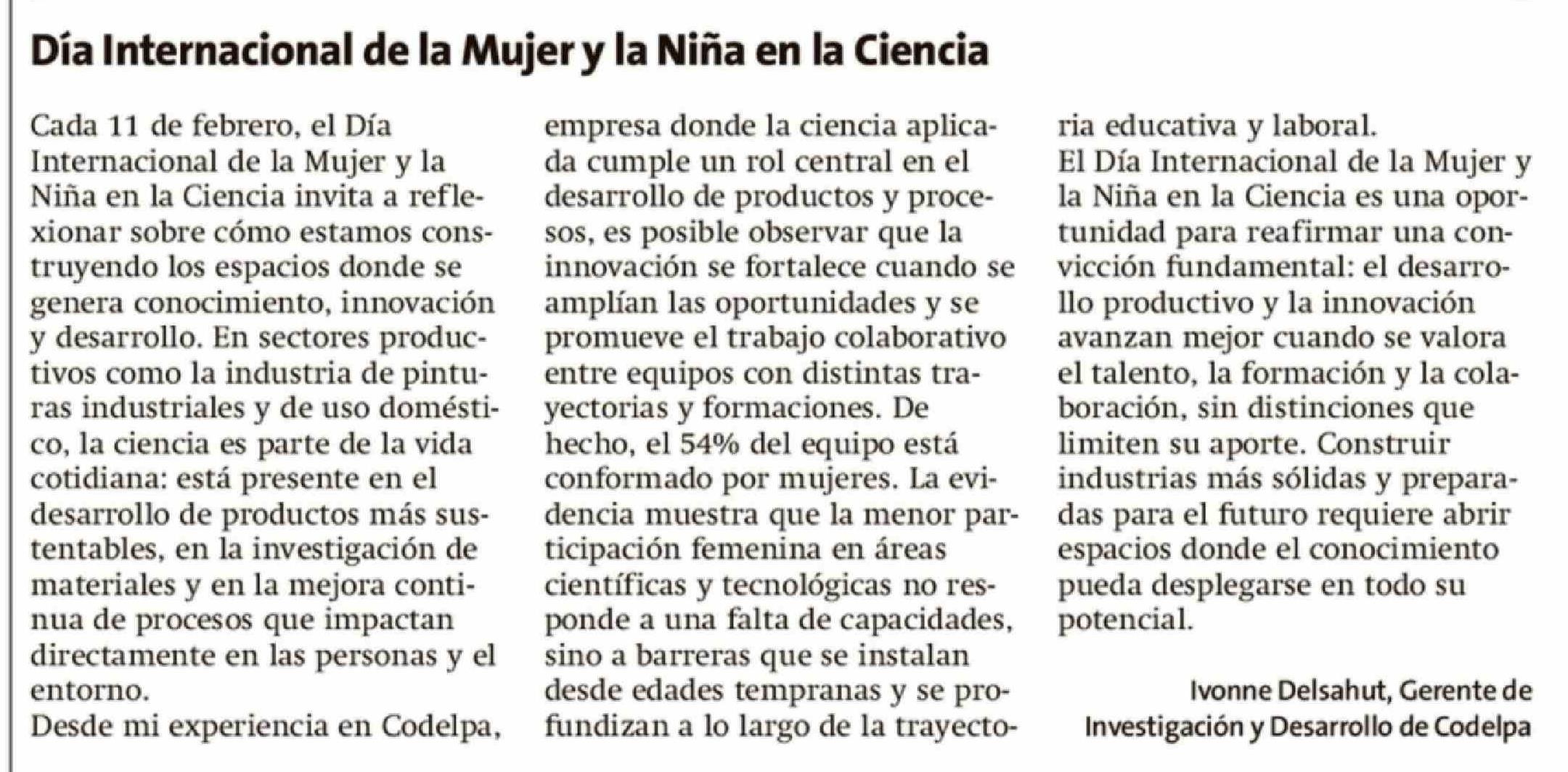Cartas: Día Internacional de la Mujer y la Niña en la Ciencia 13-02-2026 La Estrella de Valparaíso |