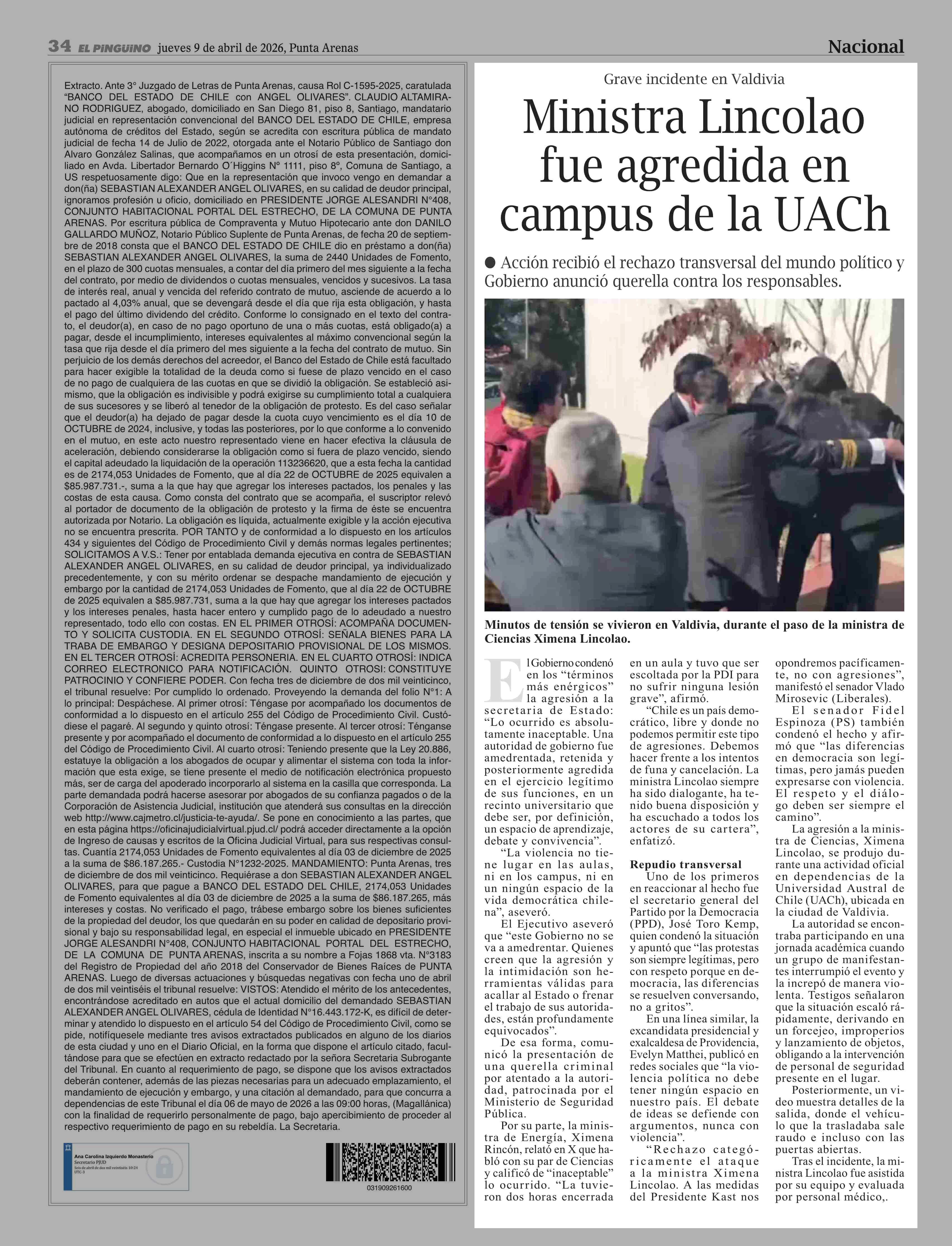 Ministra Lincolao fue agredida en campus de la UACh 09-04-2026 El Pingüino |