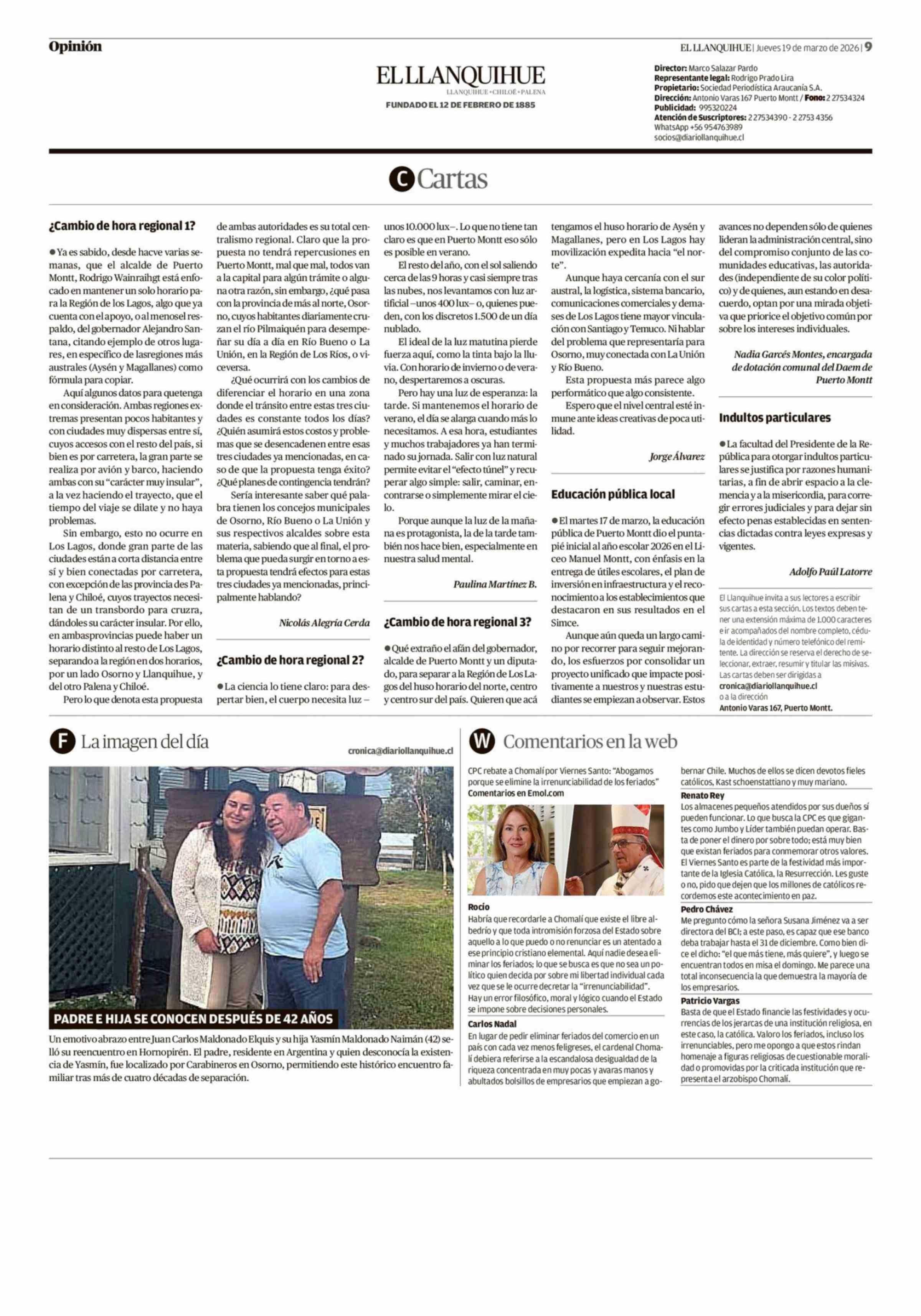Comentarios en la web 19-03-2026 El Llanquihue |