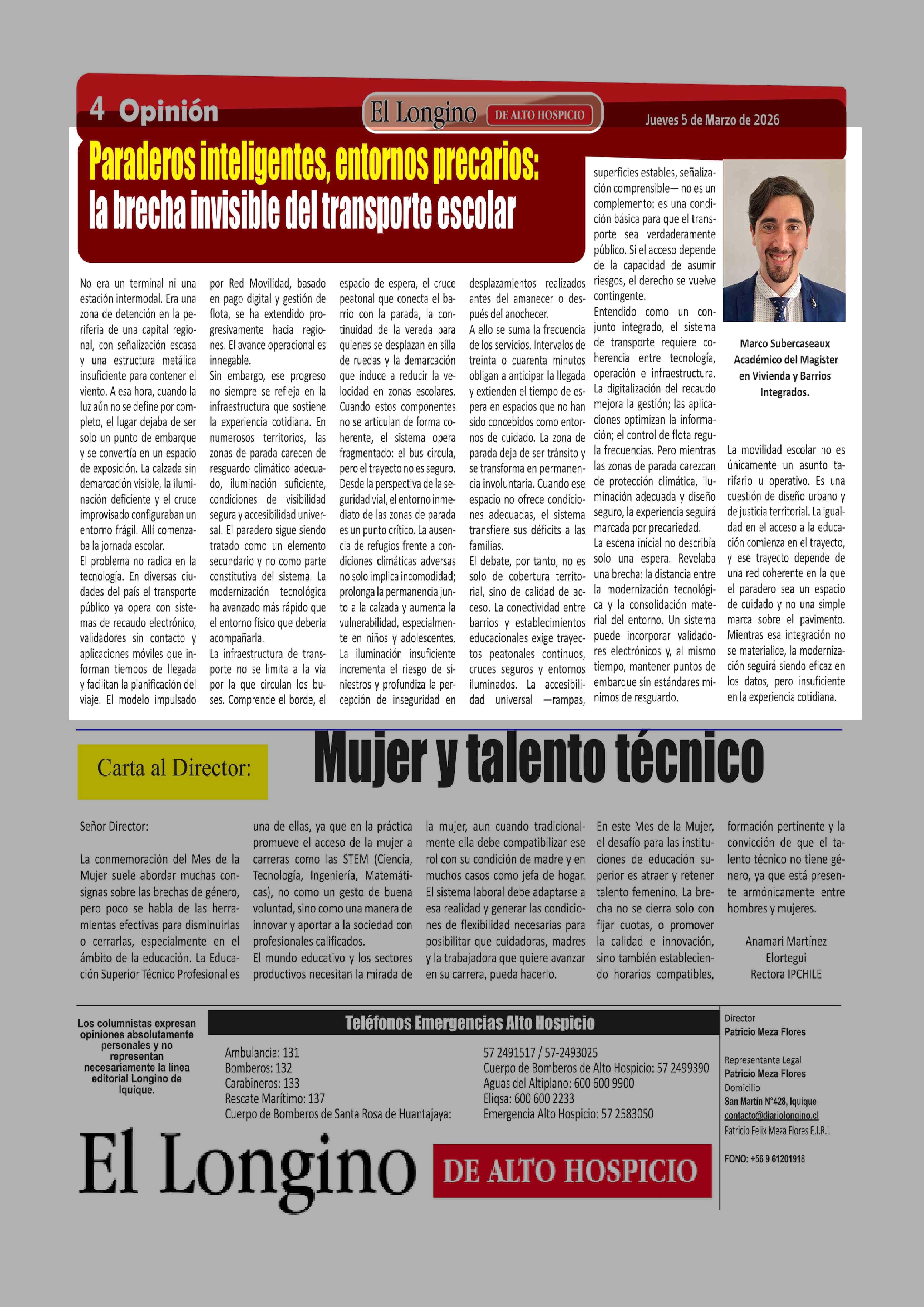 | Fecha: | 05-03-2026 | Sector: | Columnas de Opinión | Región: | Región de Tarapacá |