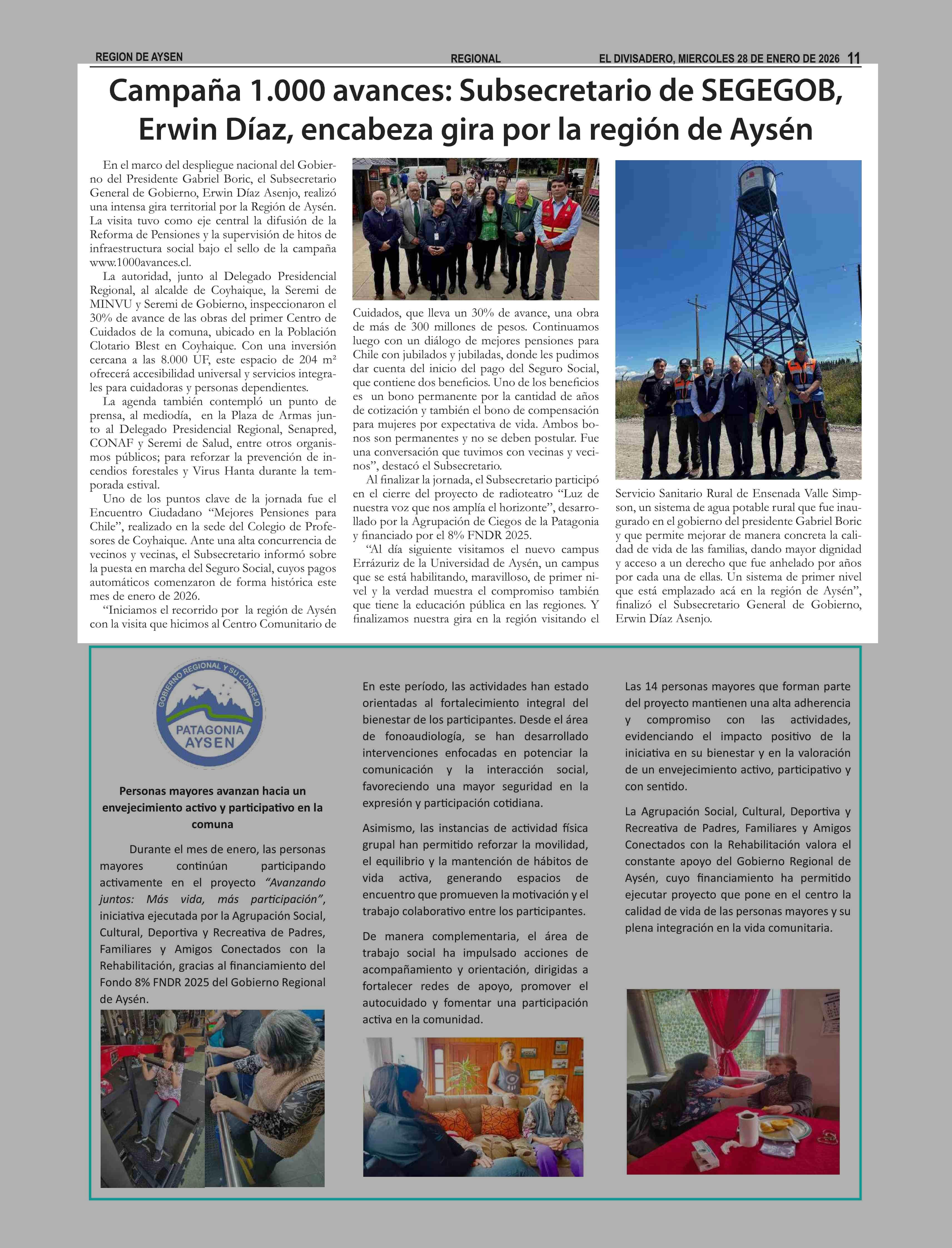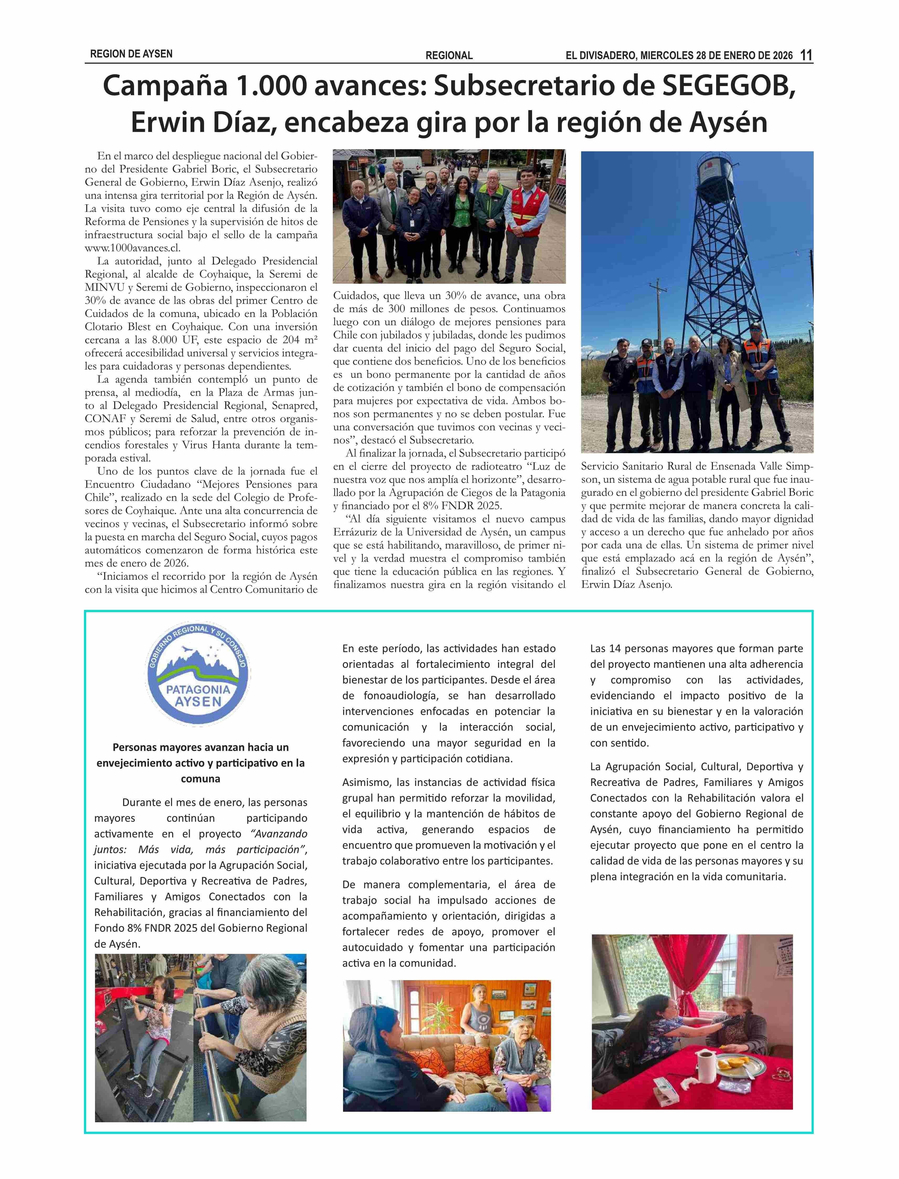 Campaña 1.000 avances: Subsecretario de SEGEGOB, Erwin Díaz, encabeza gira por la región de Aysén 28-01-2026 El Divisadero |