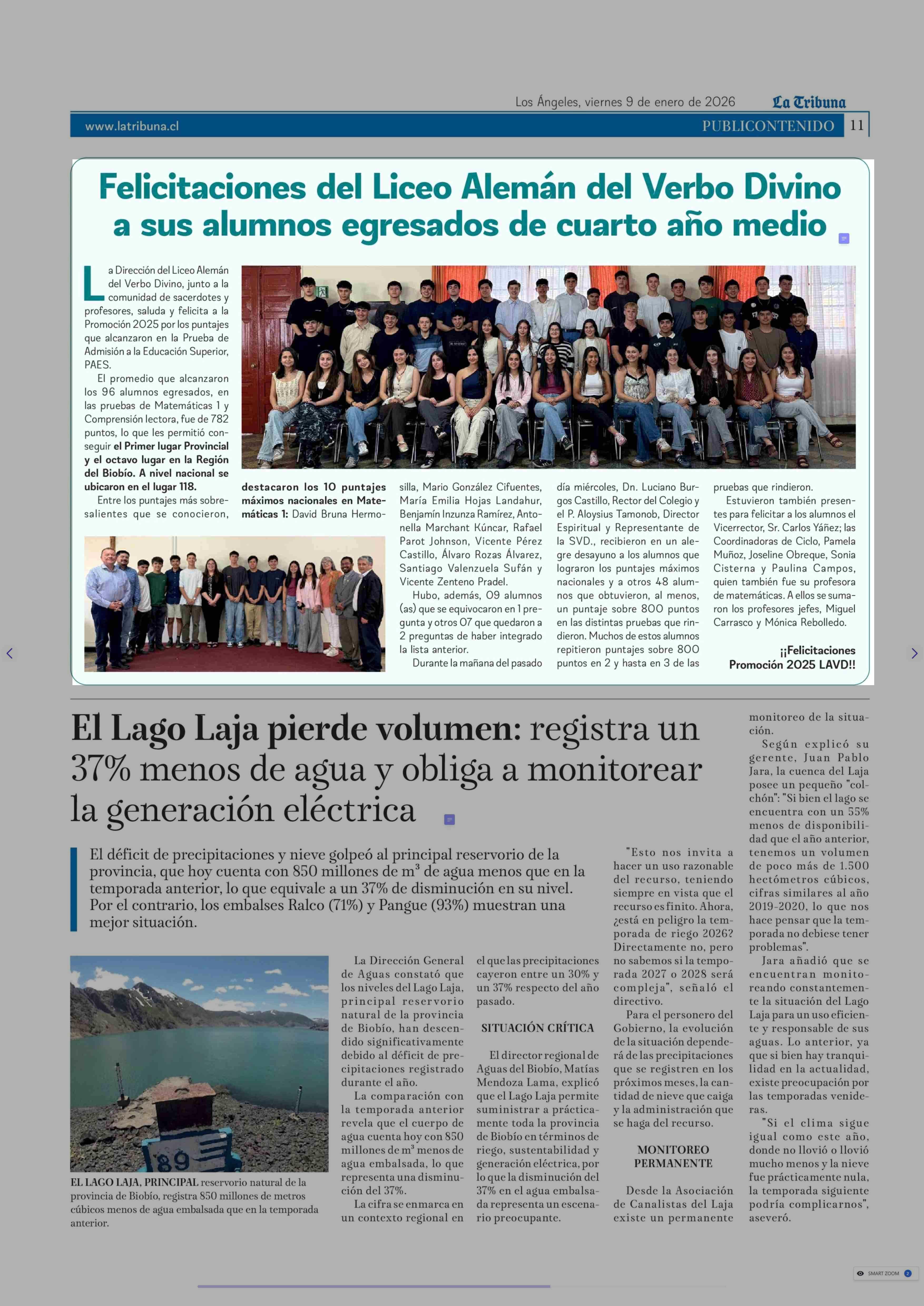 Felicitaciones del Liceo Alemán del Verbo Divino a sus alumnos egresados de cuarto año medio 09-01-2026 La Tribuna |