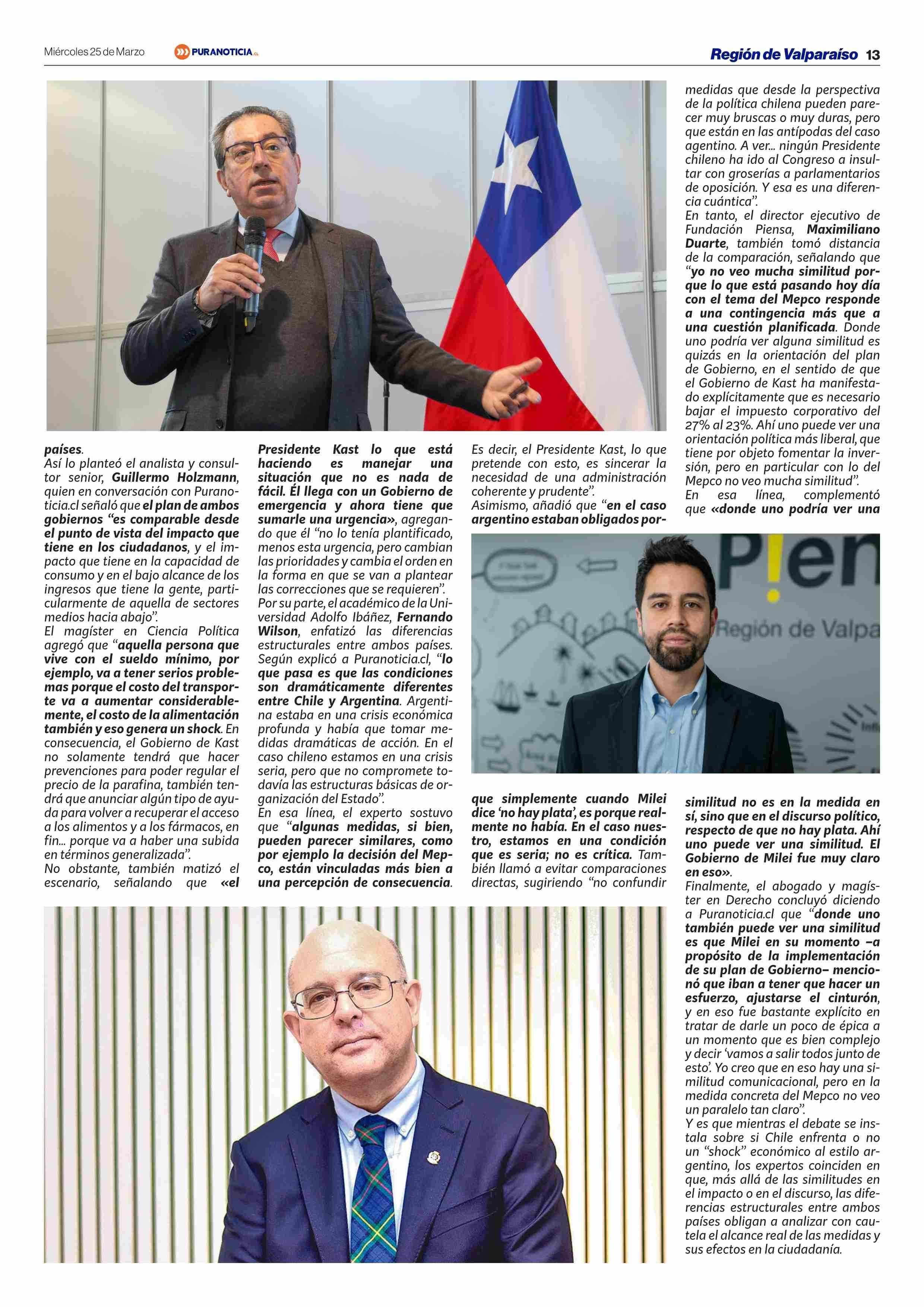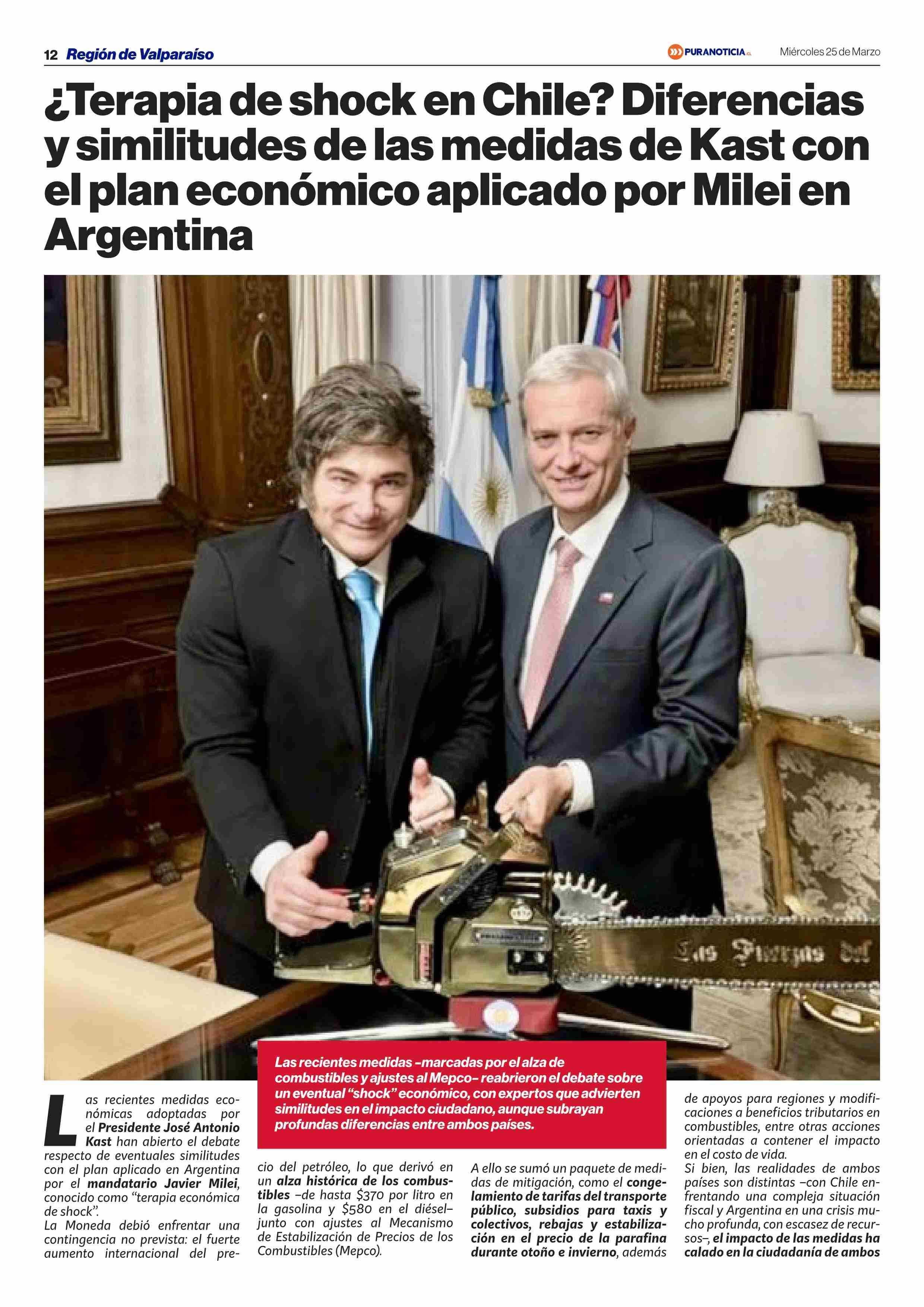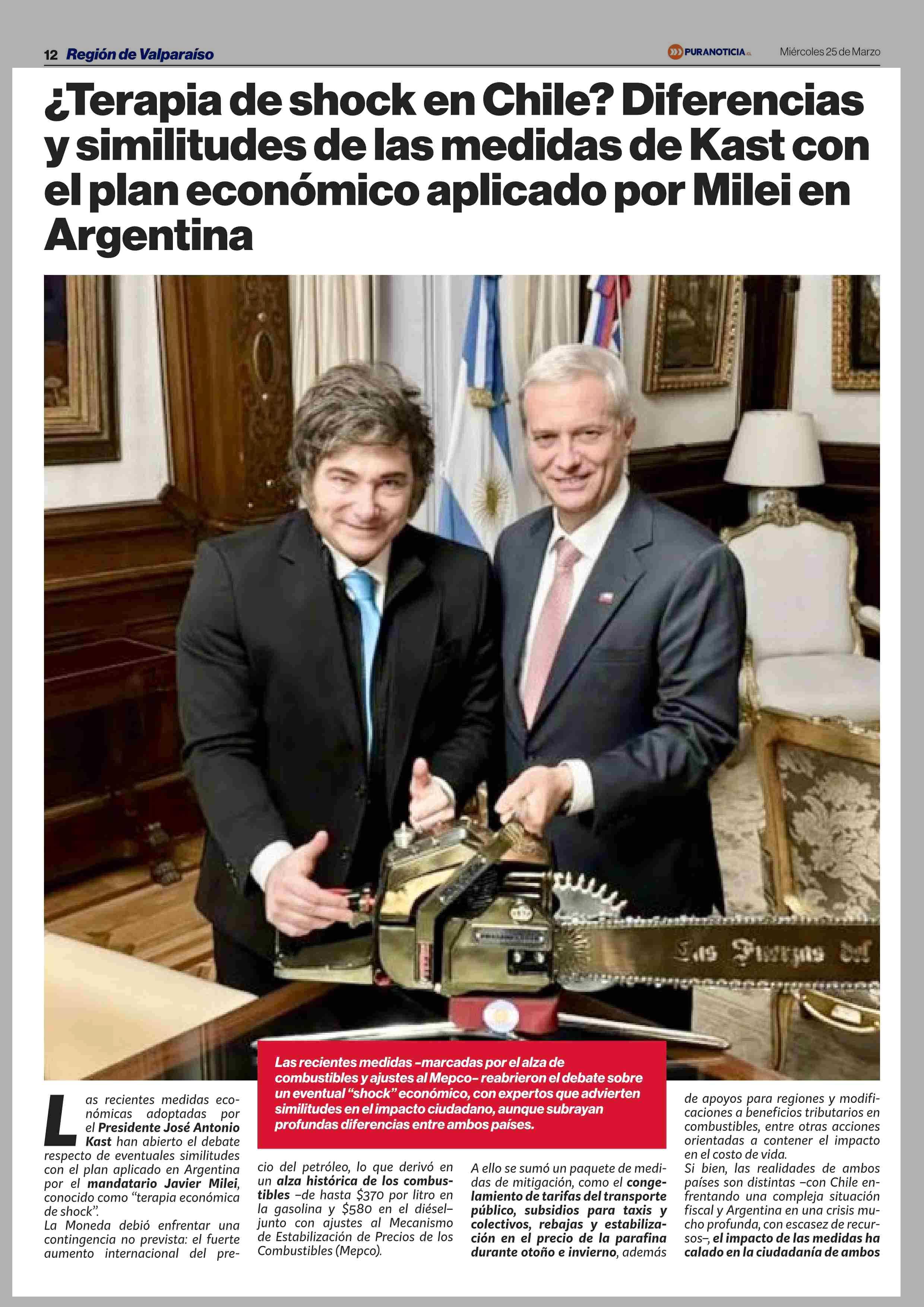 ¿Terapia de shock en Chile? Diferencias y similitudes de las medidas de Kast con el plan económico aplicado por Milei en Argentina 25-03-2026 Puranoticia.cl |