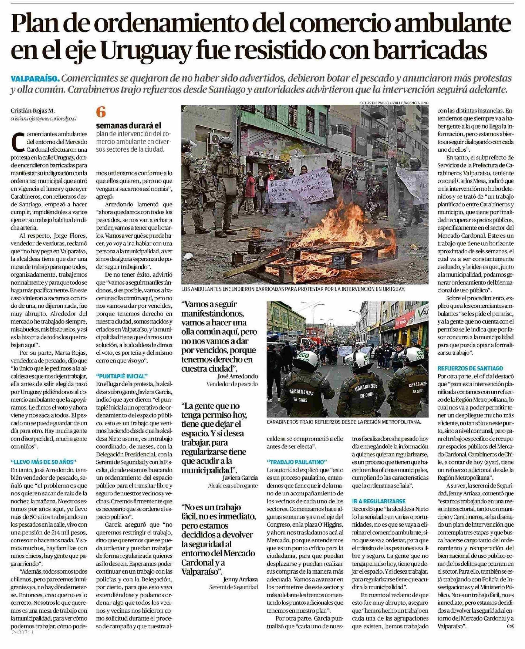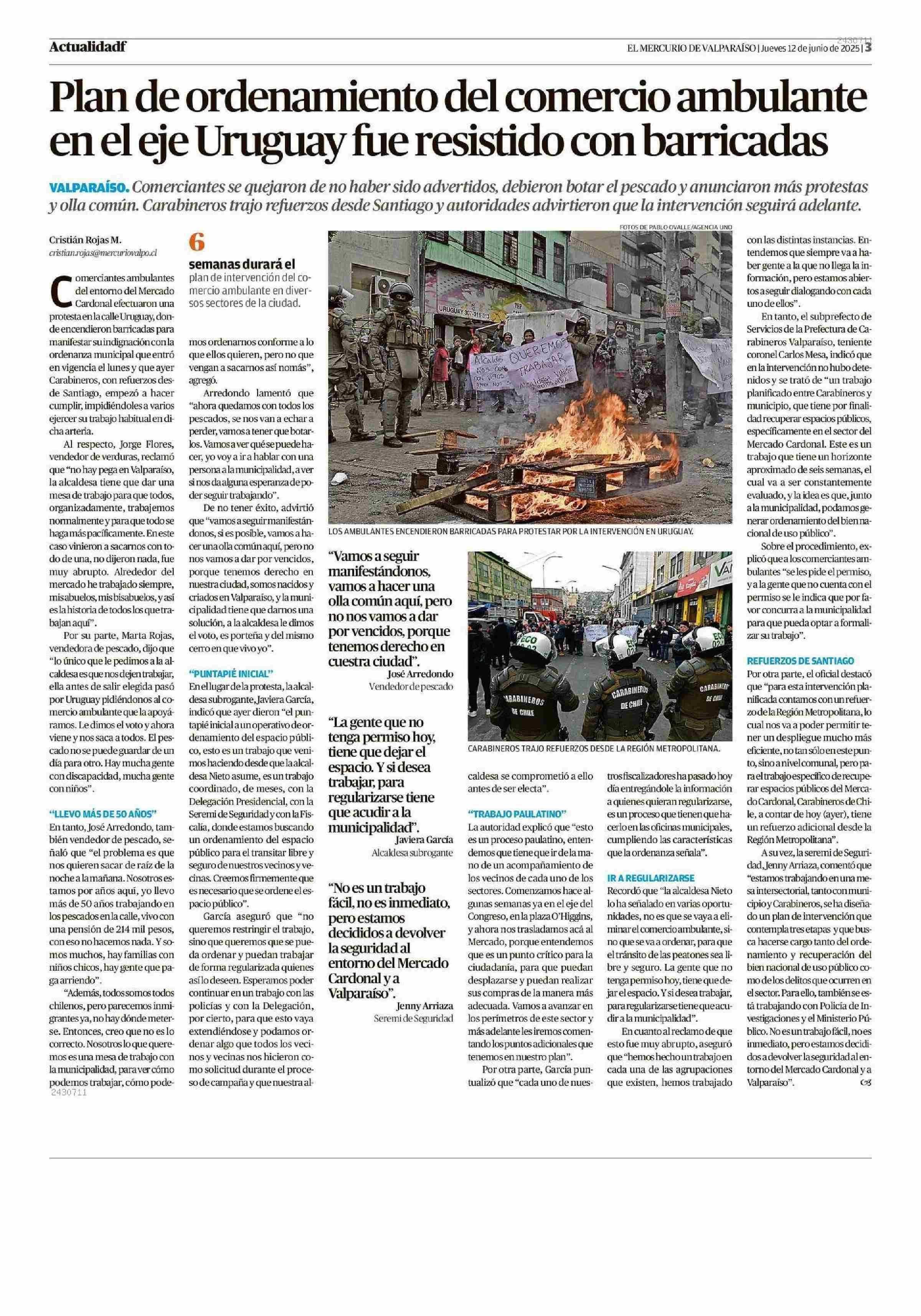 Título: Plan de ordenamiento del comercio ambulante en el eje Uruguay fue resistido con barricadas
