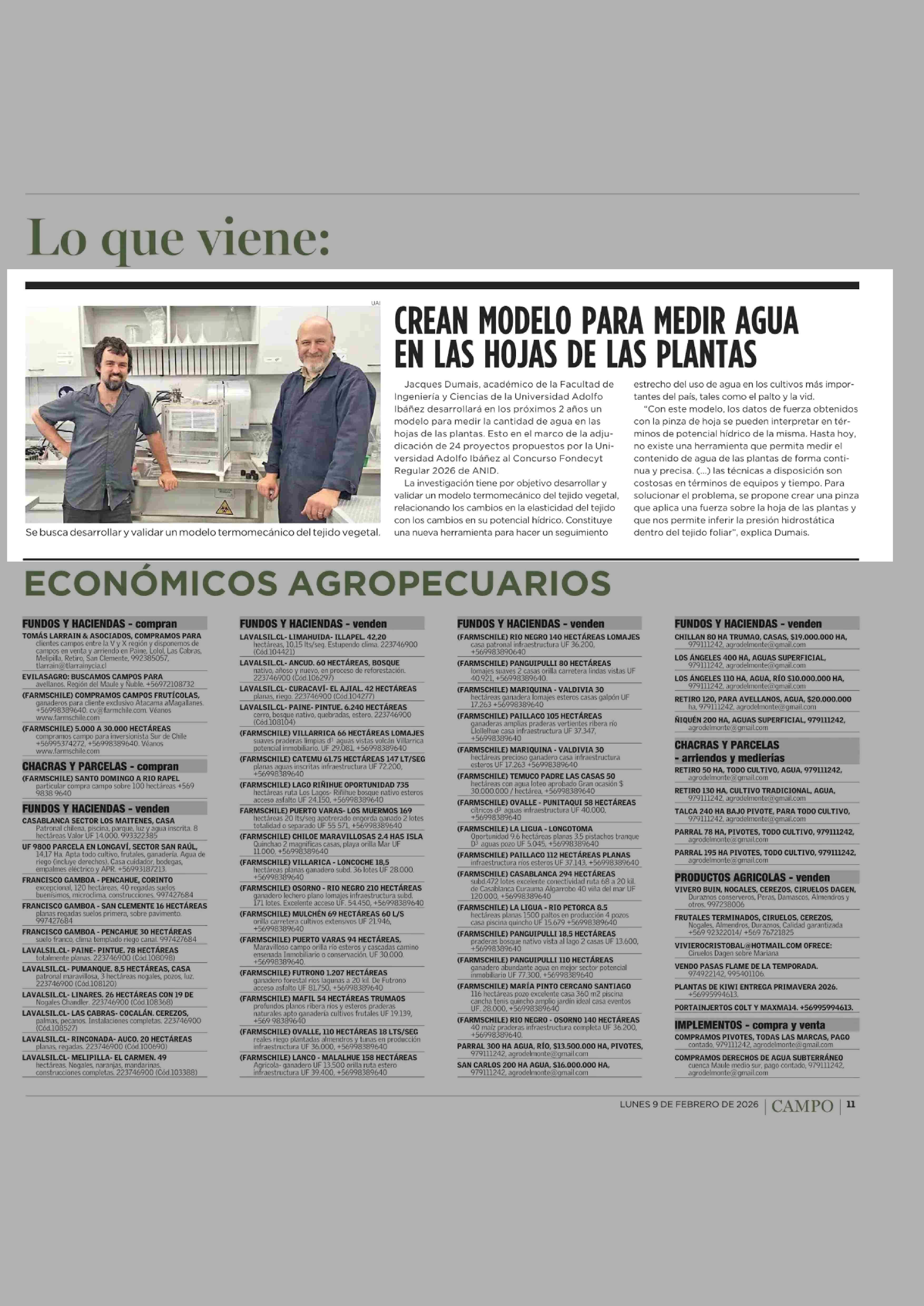 CREAN MODELO PARA MEDIR AGUA EN LAS HOJAS DE LAS PLANTAS 09-02-2026 El Mercurio |