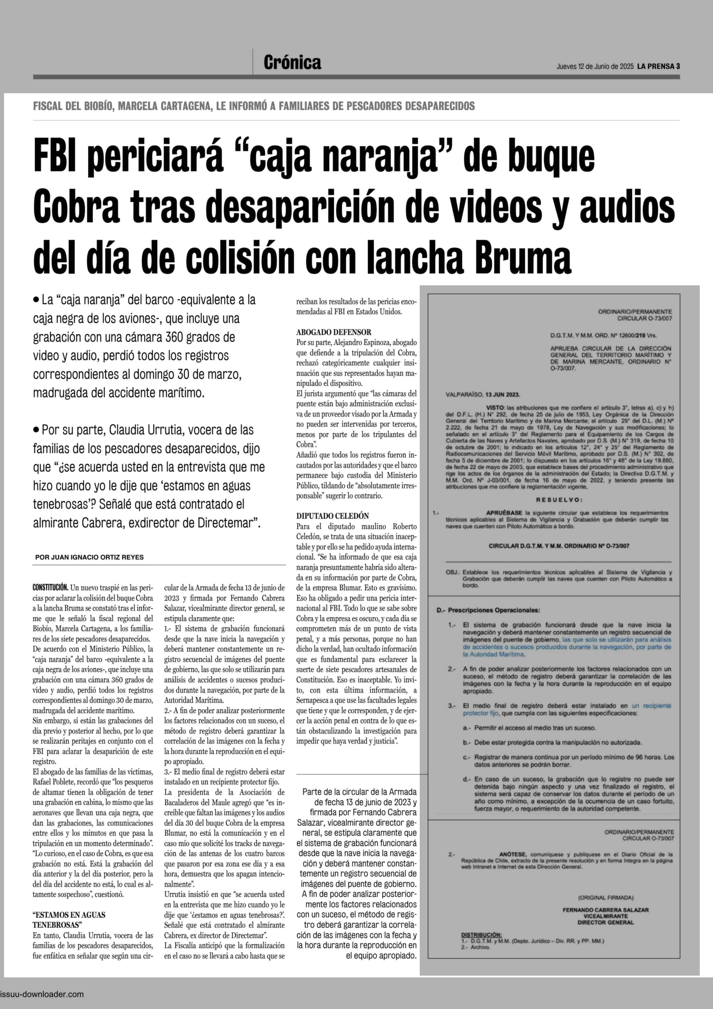 FBI periciará “caja naranja” de buque Cobra tras desaparición de videos y audios del día de colisión con lancha Bruma 12-06-2025 La Prensa de Curicó |