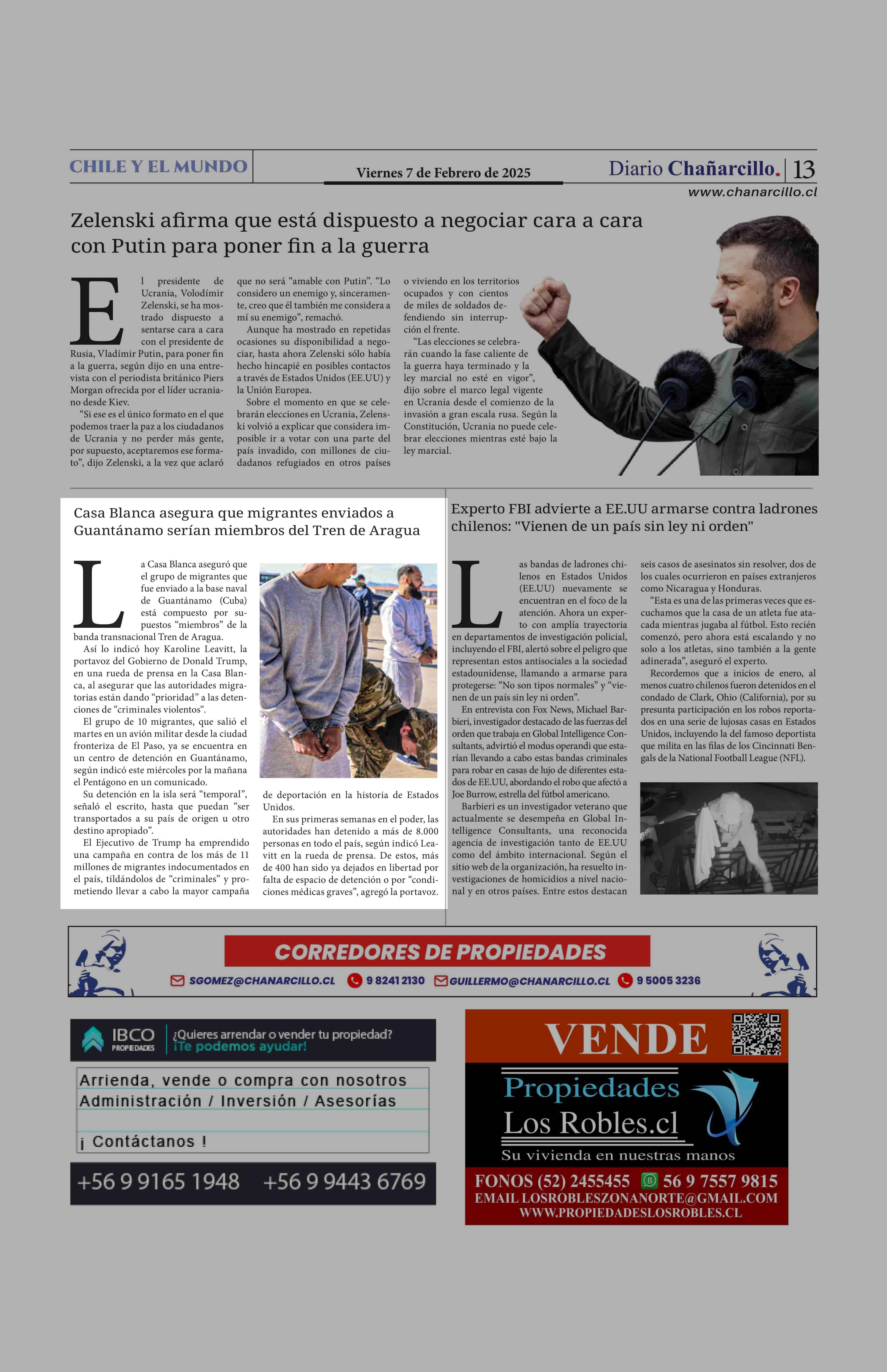 Casa Blanca asegura que migrantes enviados a Guantánamo serían miembros del Tren de Aragua 07-02-2025 Diario Chañarcillo |