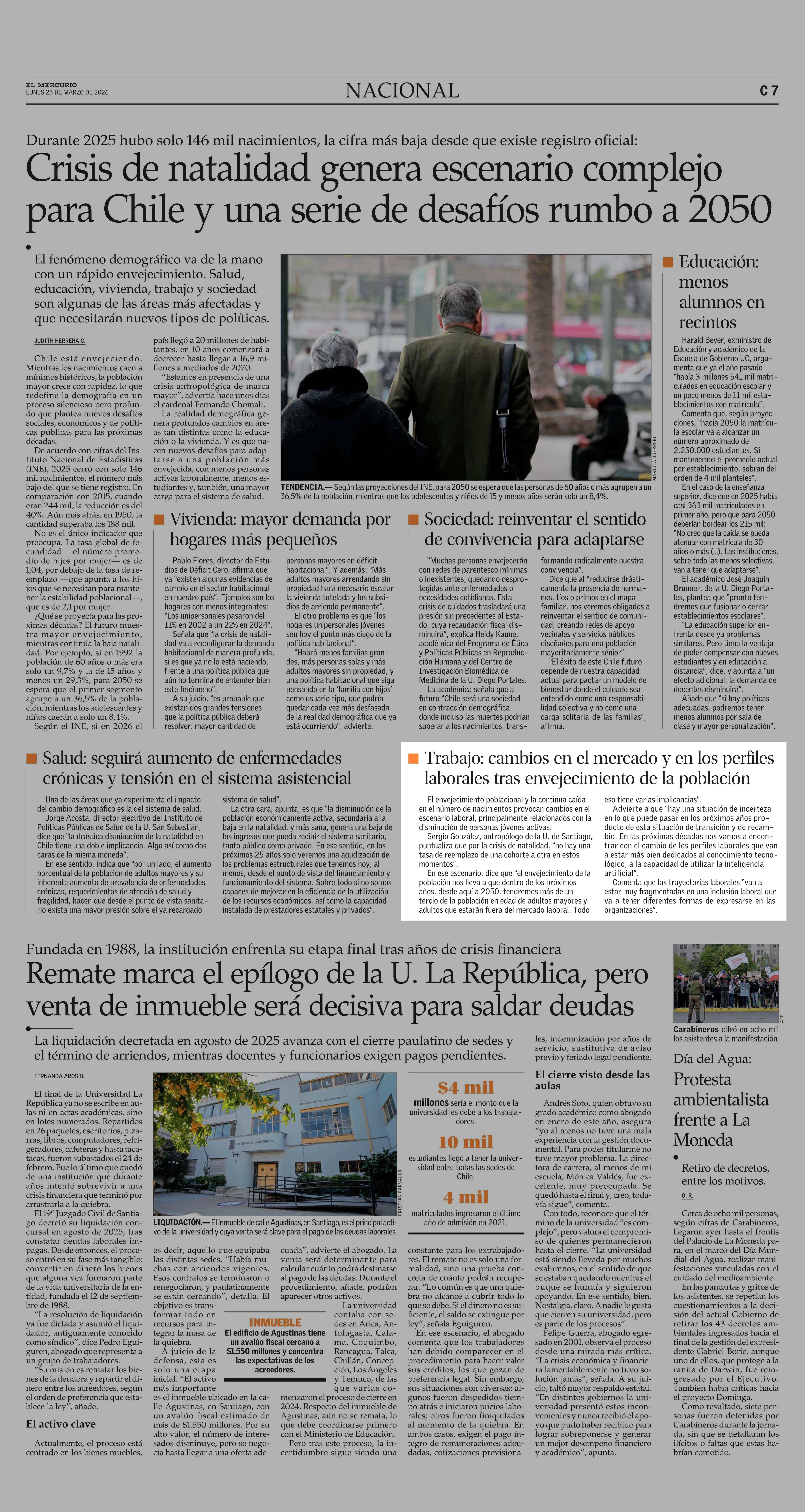 N Trabajo: cambios en el mercado y en los perfiles laborales tras envejecimiento de la población 23-03-2026 El Mercurio |