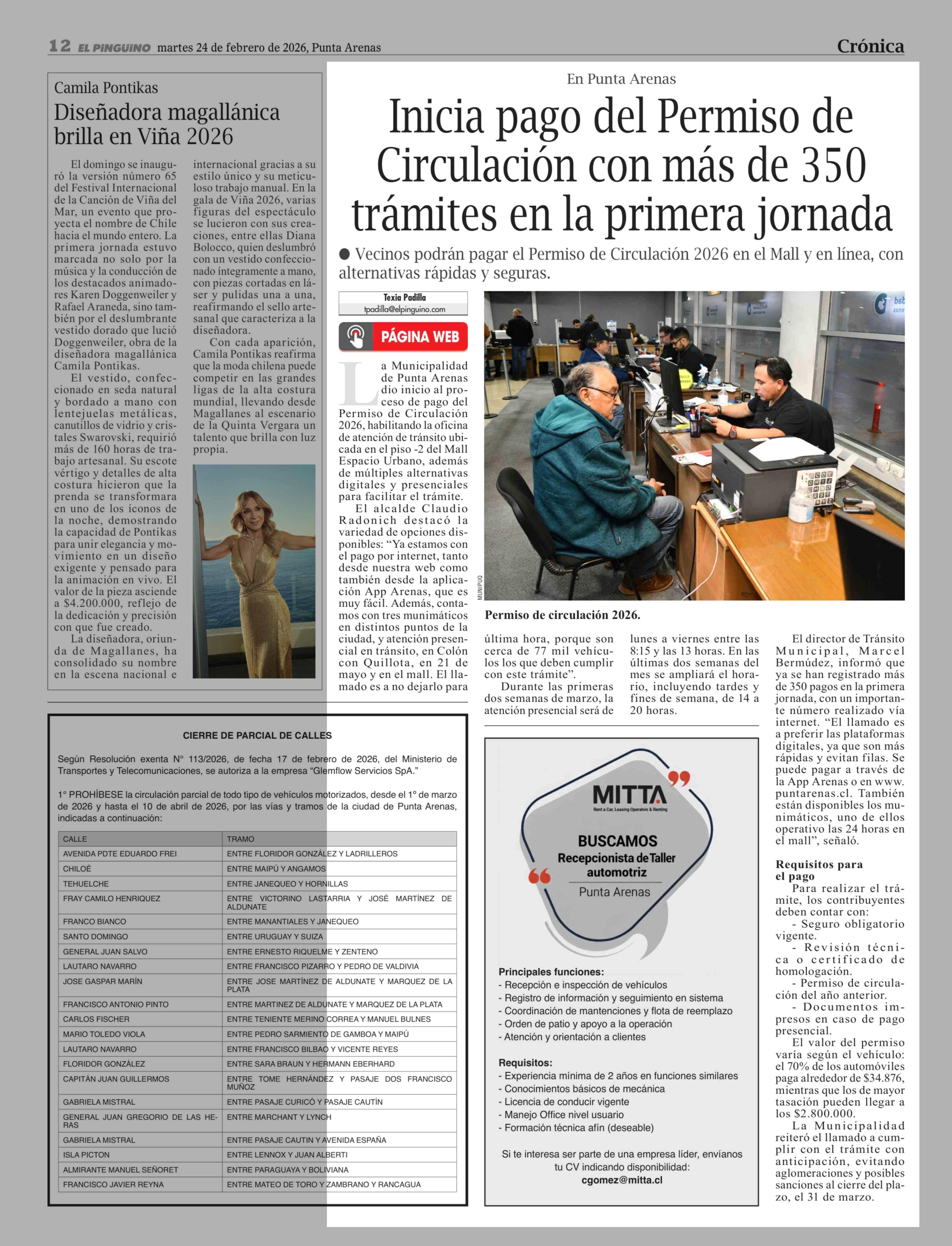 Inicia pago del Permiso de Circulación con más de 350 trámites en la primera jornada 24-02-2026 El Pingüino |