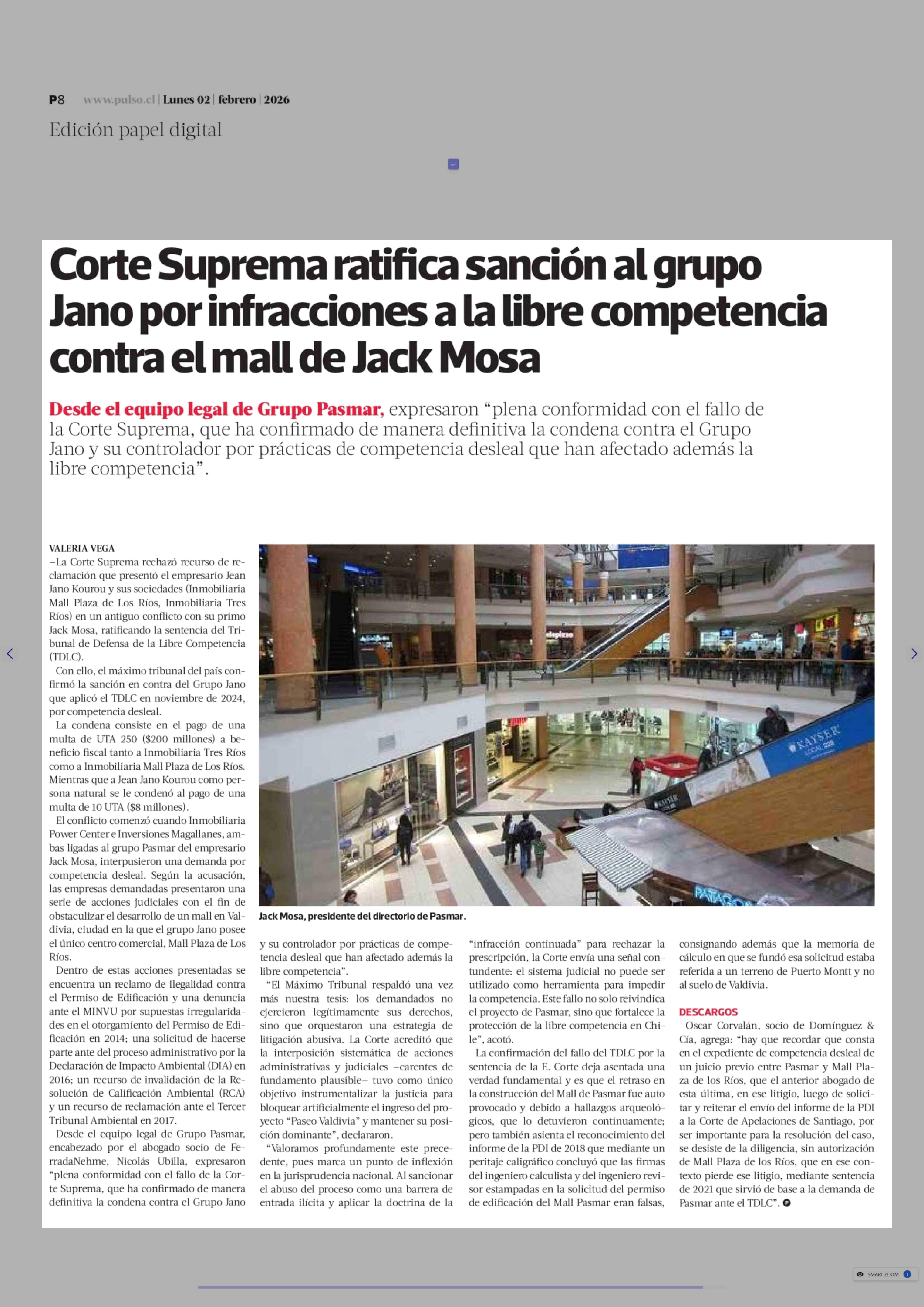 Título: Corte Suprema ratifica sanción al grupo Jano por infracciones a la libre competencia contra el mall de Jack Mosa