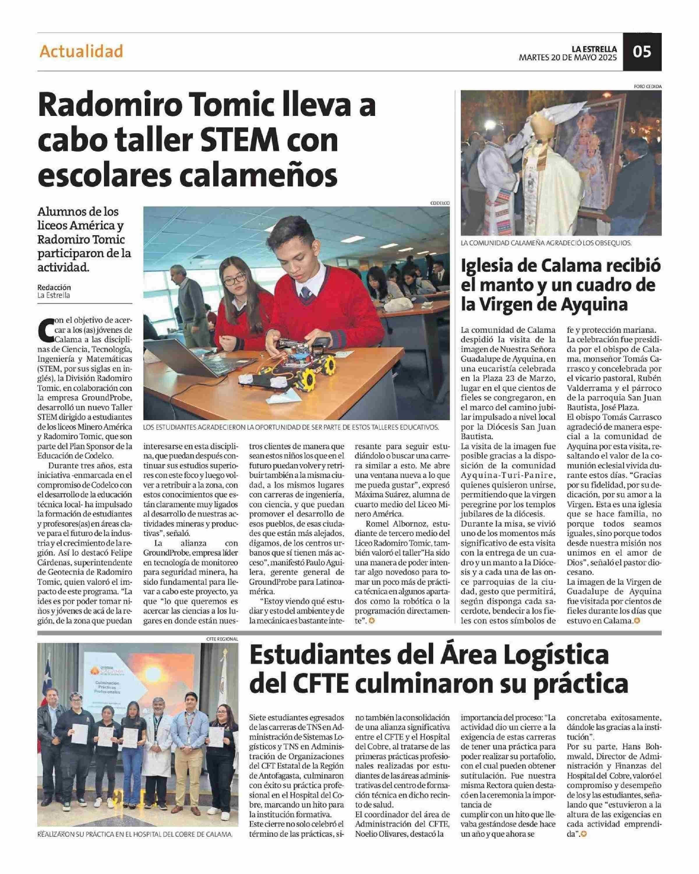 Título: Radomiro Tomic lleva a cabo taller STEM con escolares calameños