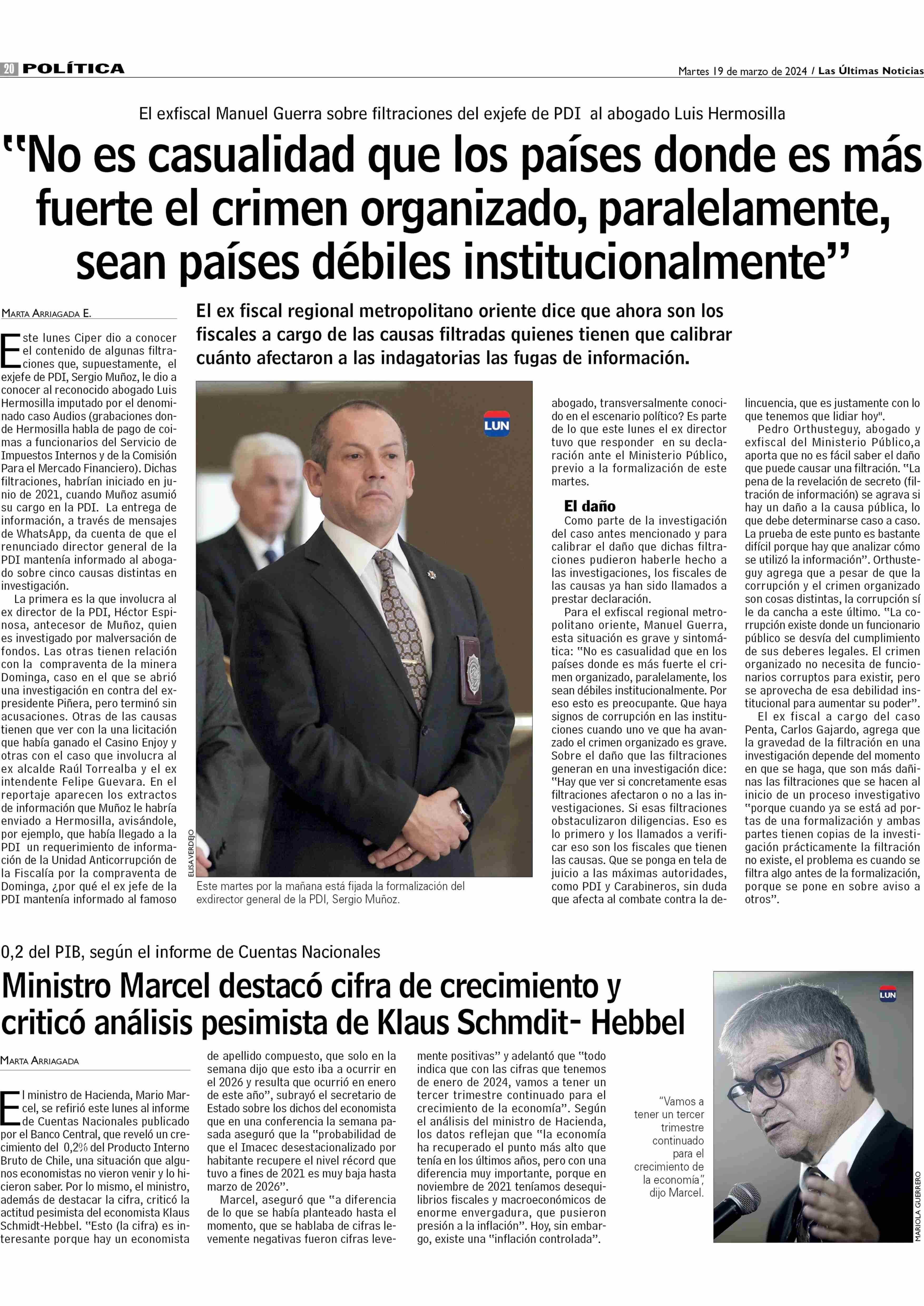 Ministro Marcel destacó cifra de crecimiento y criticó análisis pesimista de Klaus Schmdit- Hebbel 19-03-2024 Las Últimas Noticias |