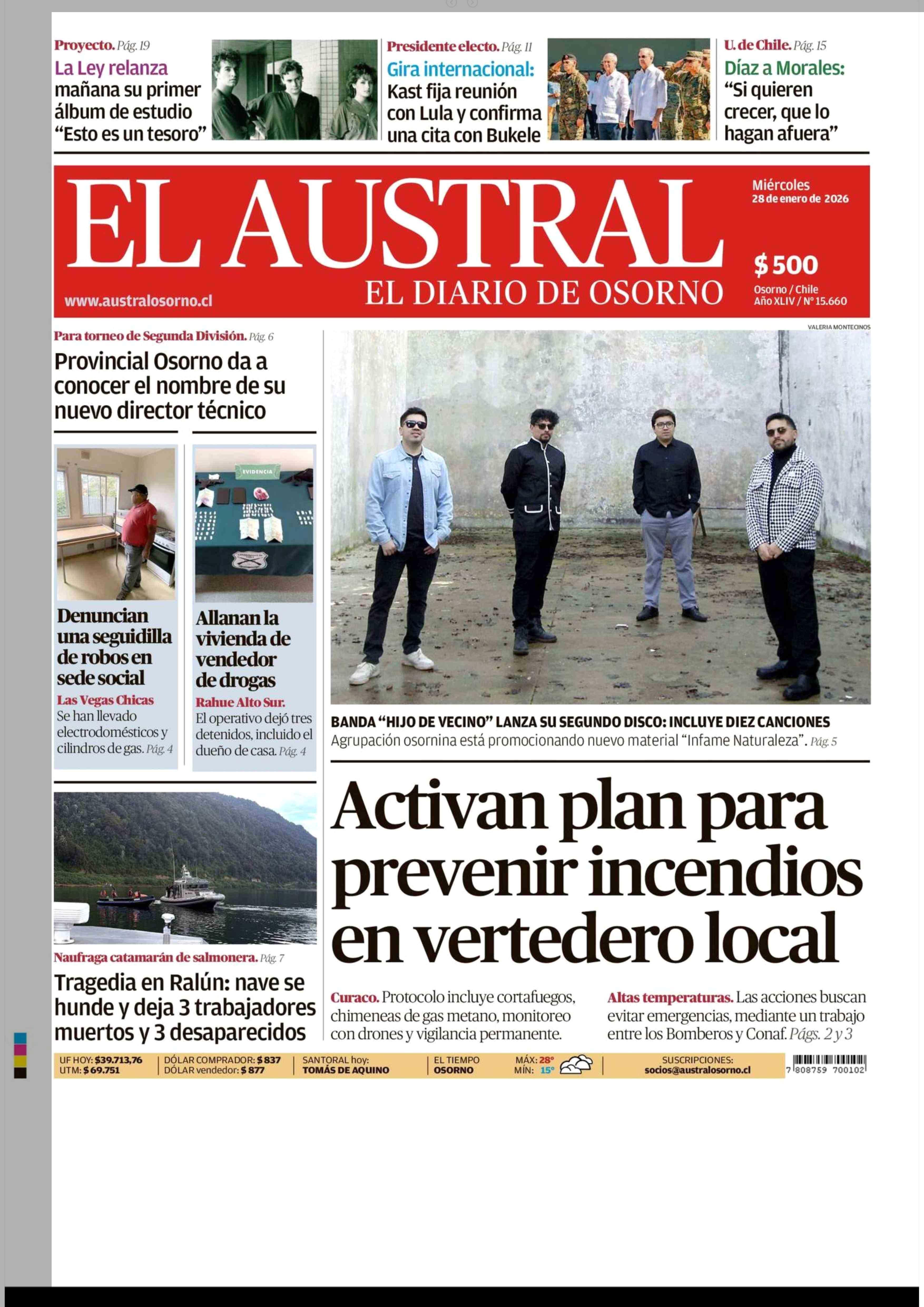 PORTADA EL AUSTRAL DE OSORNO - CHILE 28-01-2026 El Austral de Osorno |