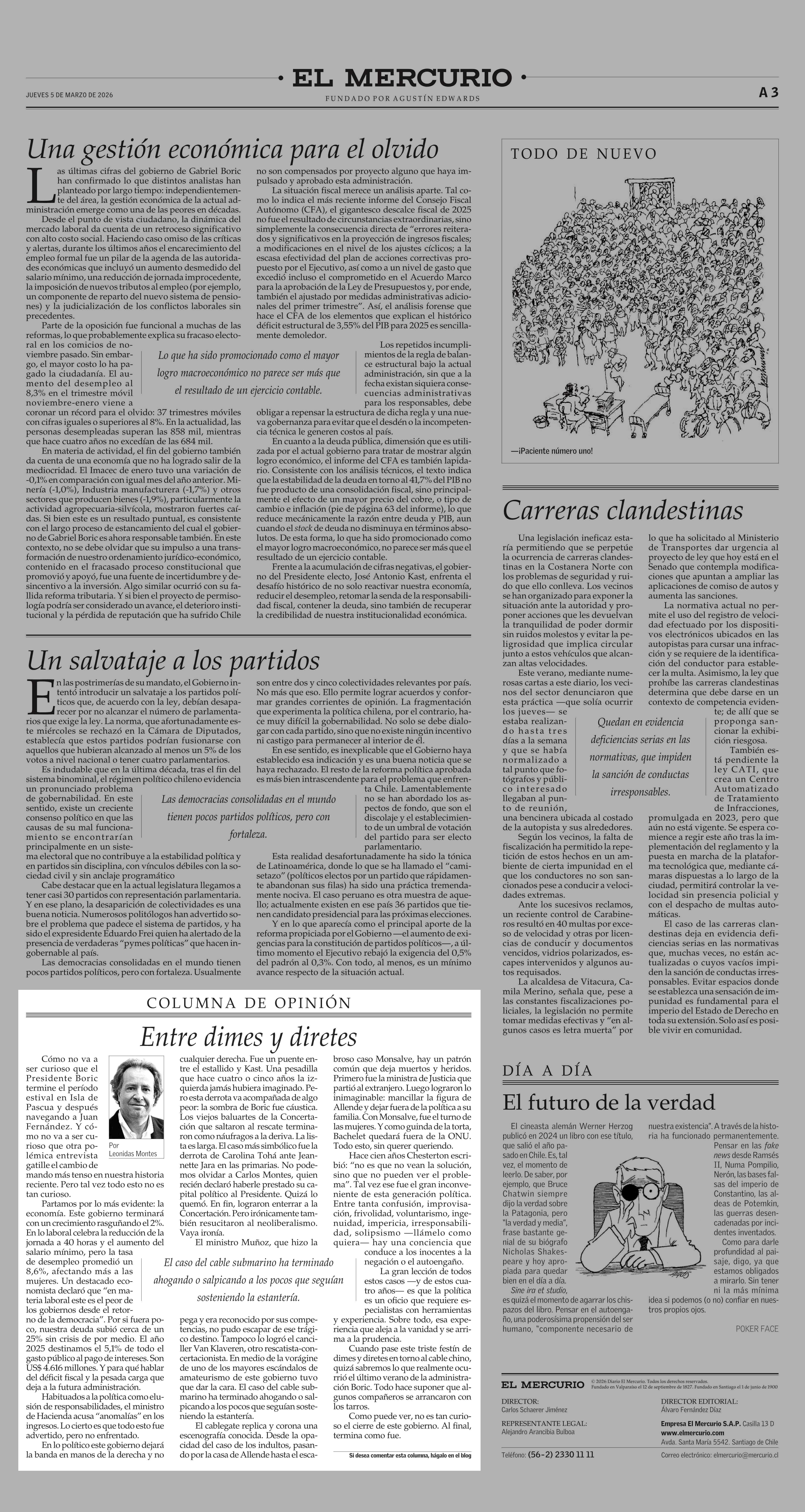 Columnas de Opinión: Entre dimes y diretes 05-03-2026 El Mercurio |