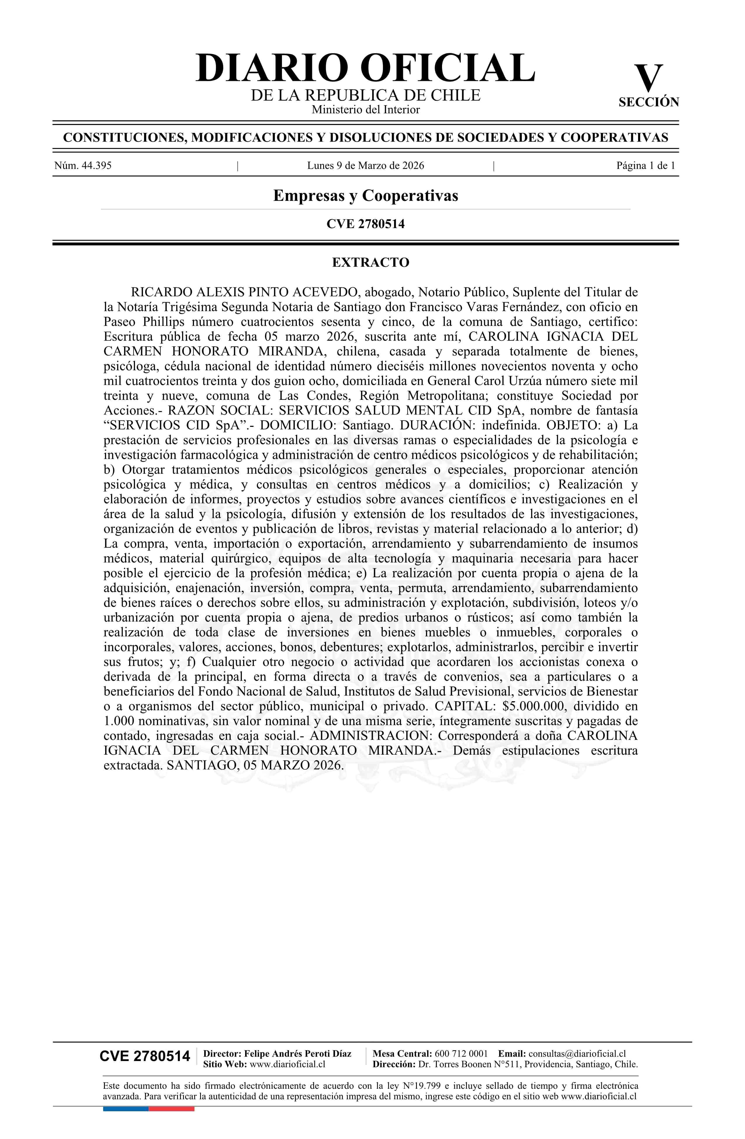 Título: SERVICIOS SALUD MENTAL CID SpA