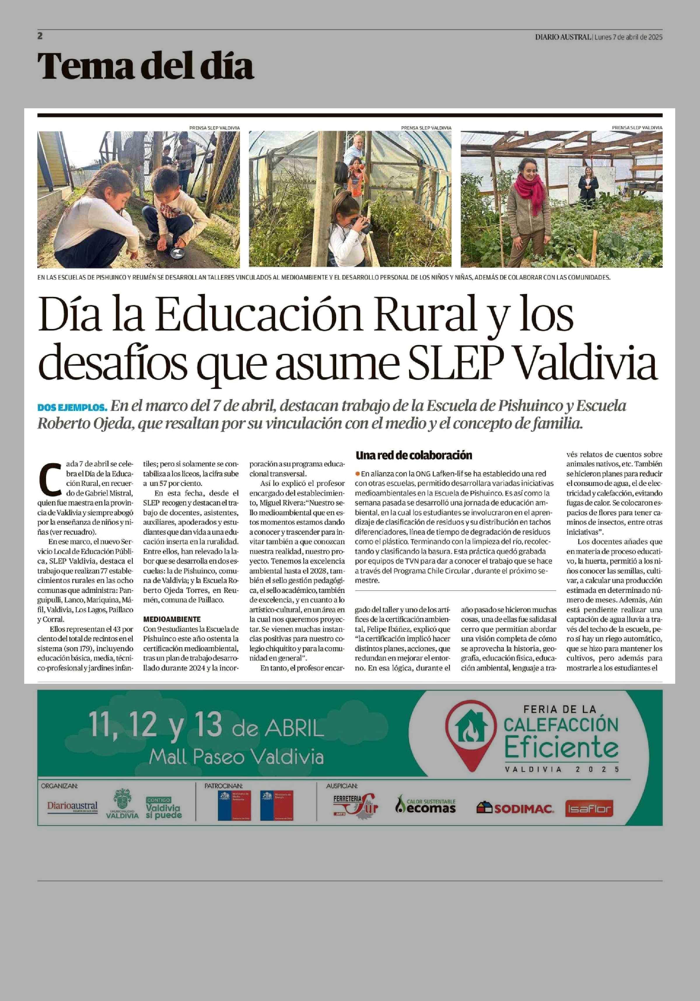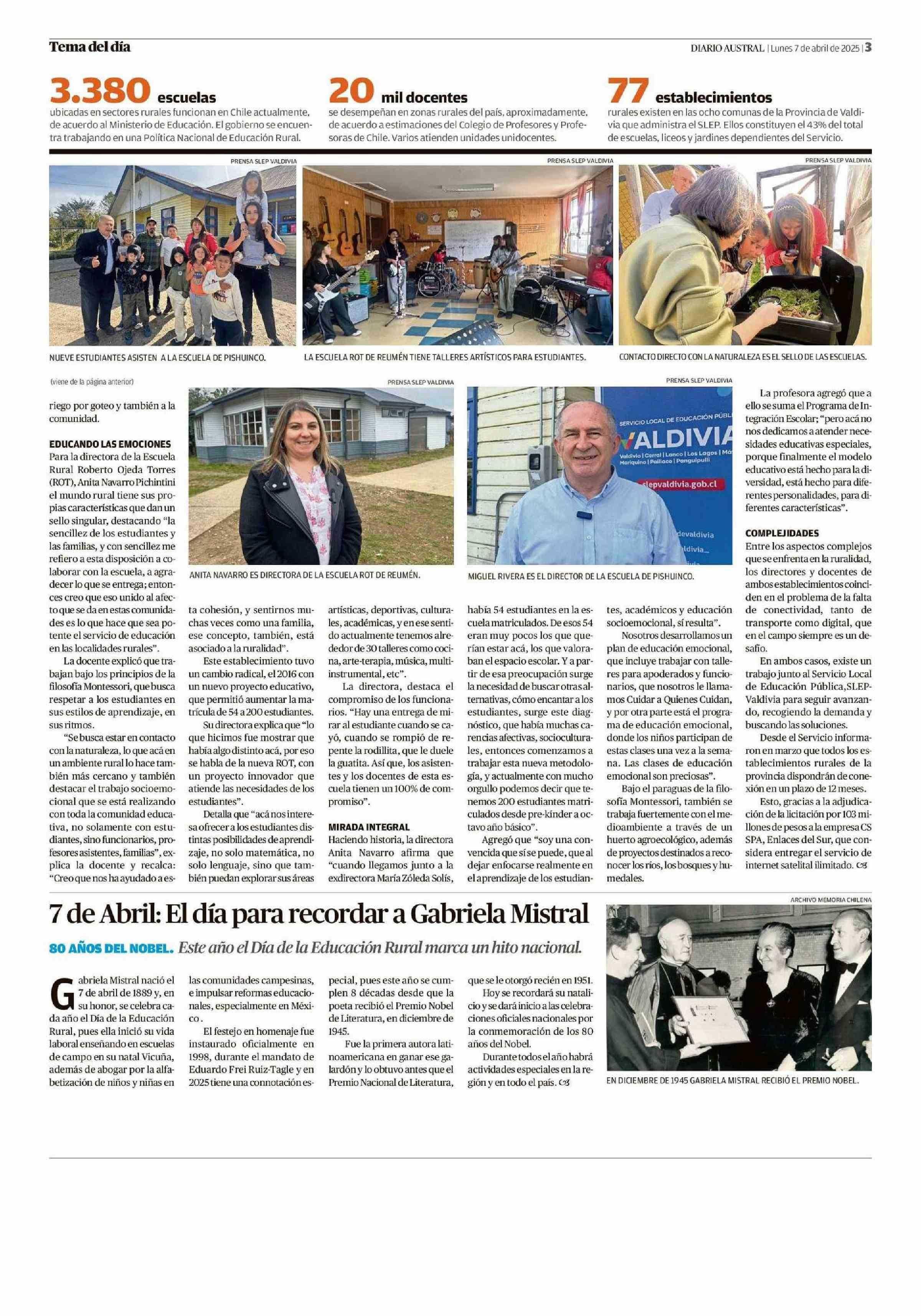 Día la Educación Rural y los desafíos que asume SLEP Valdivia 07-04-2025 Diario Austral Región de Los Ríos |