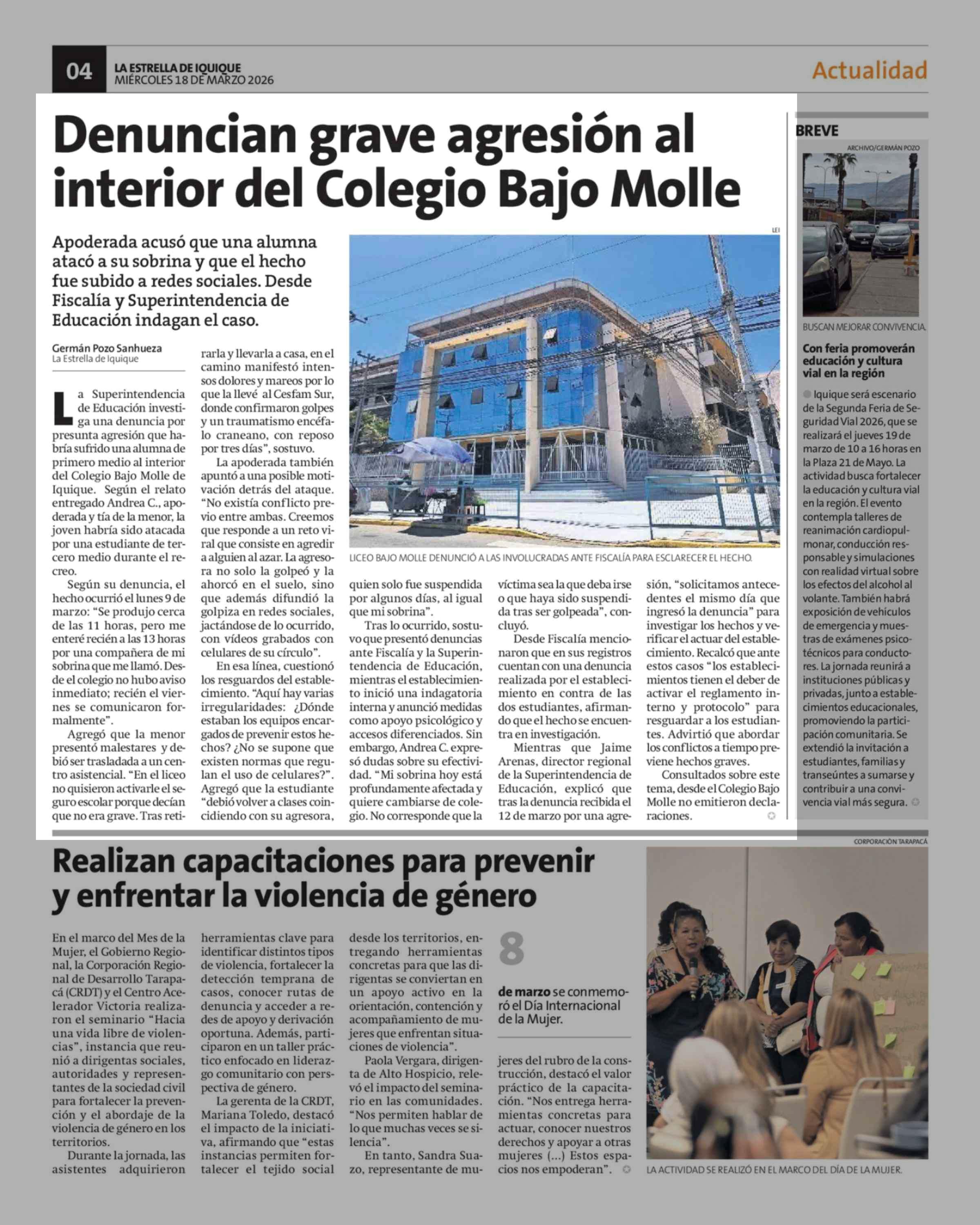 Fecha: 18-03-2026 Sector: Noticia general Región: Región de Tarapacá