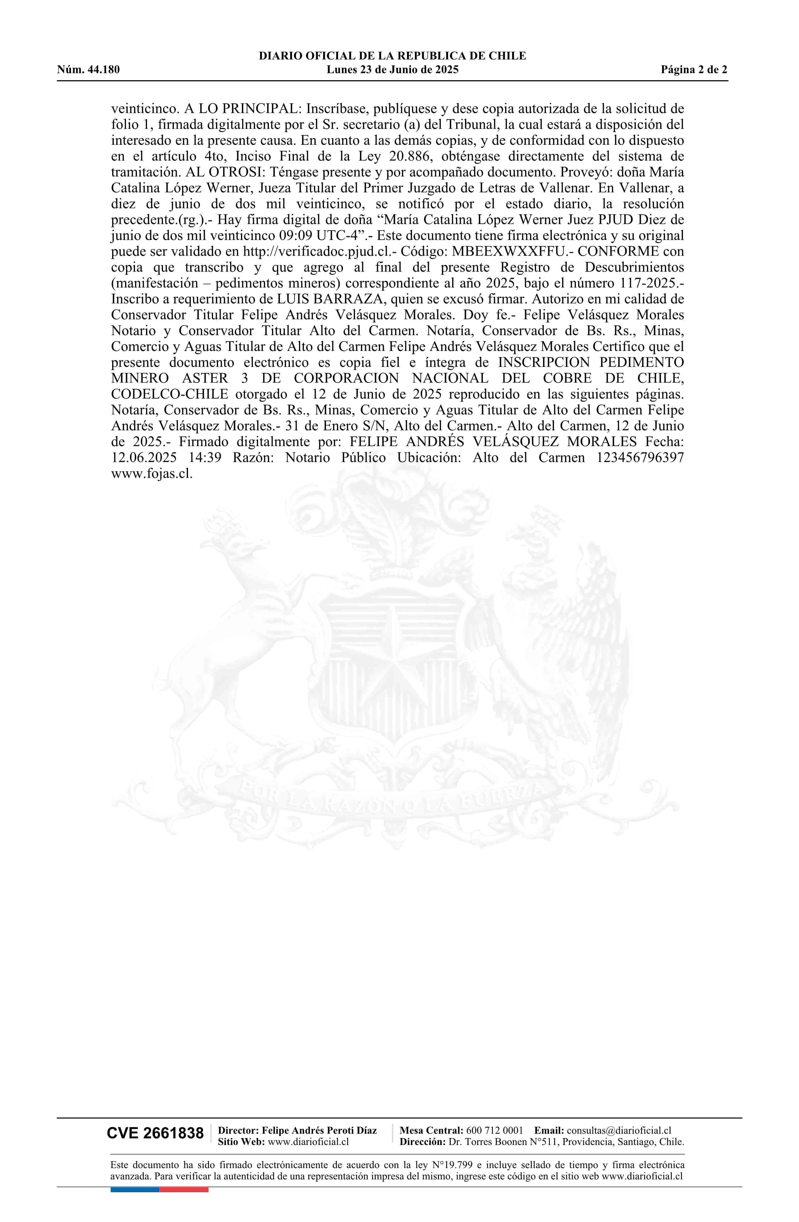 23-06-2025 DIARIO OFICIAL CHILE - BOLETÍN OFICIAL DE MINERÍA