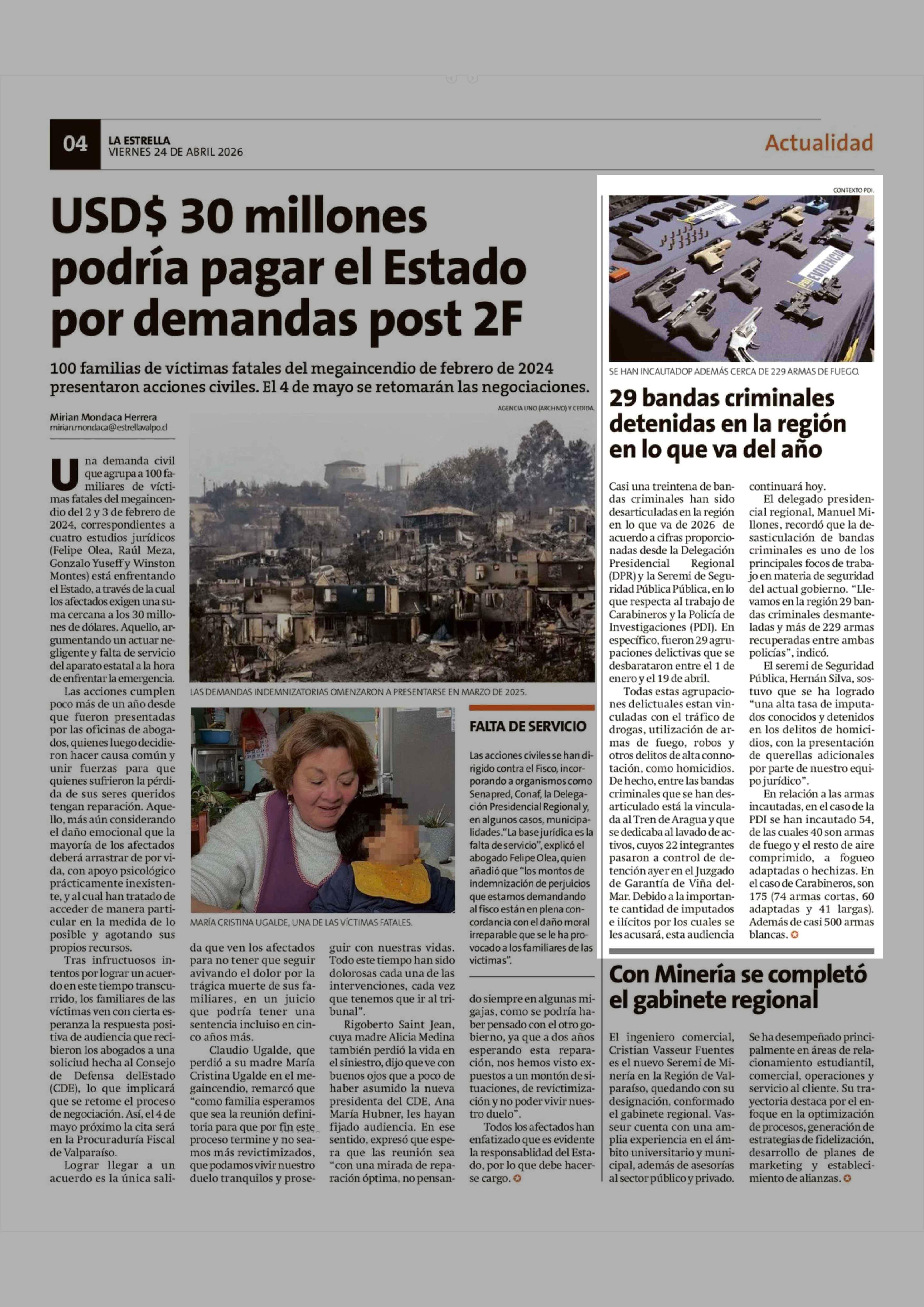 29 Bandas criminales detenidas en la región en lo que va del año 24-04-2026 La Estrella de Valparaíso |