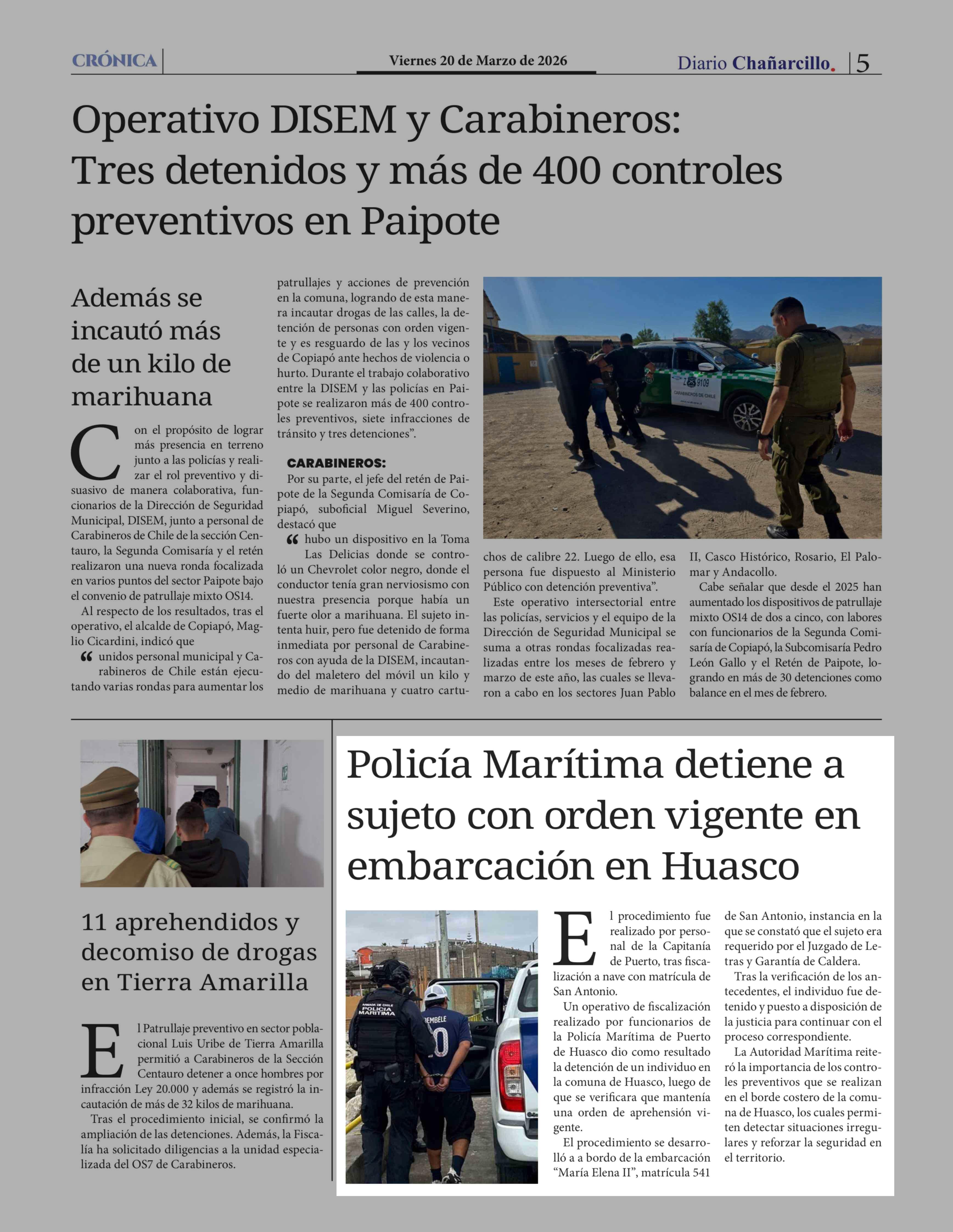 Policía Marítima detiene a sujeto con orden vigente en embarcación en Huasco 20-03-2026 Diario Chañarcillo |