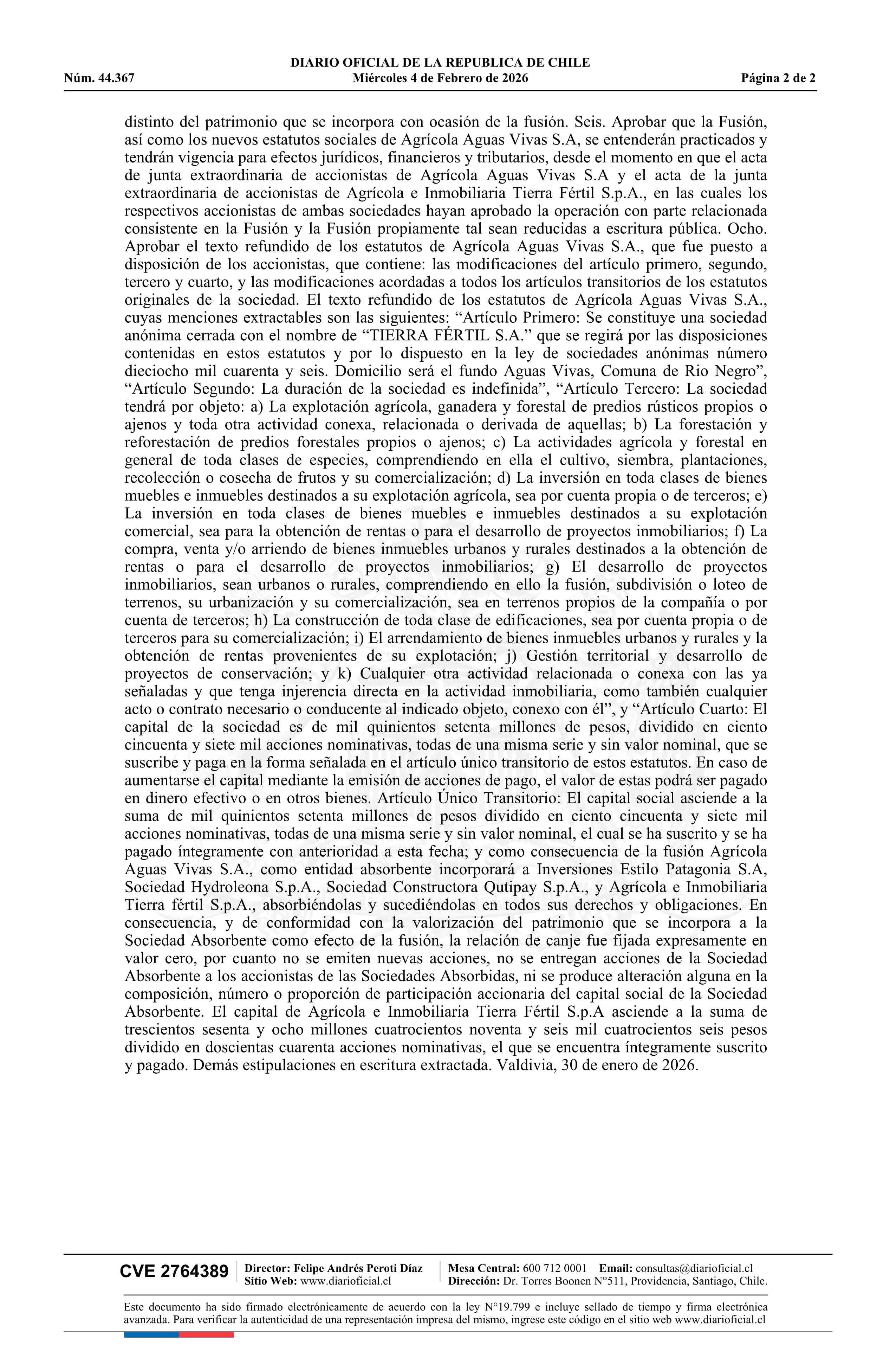 Título: AGRÍCOLA E INMOBILIARIA TIERRA FÉRTIL SpA 76.756.512-7