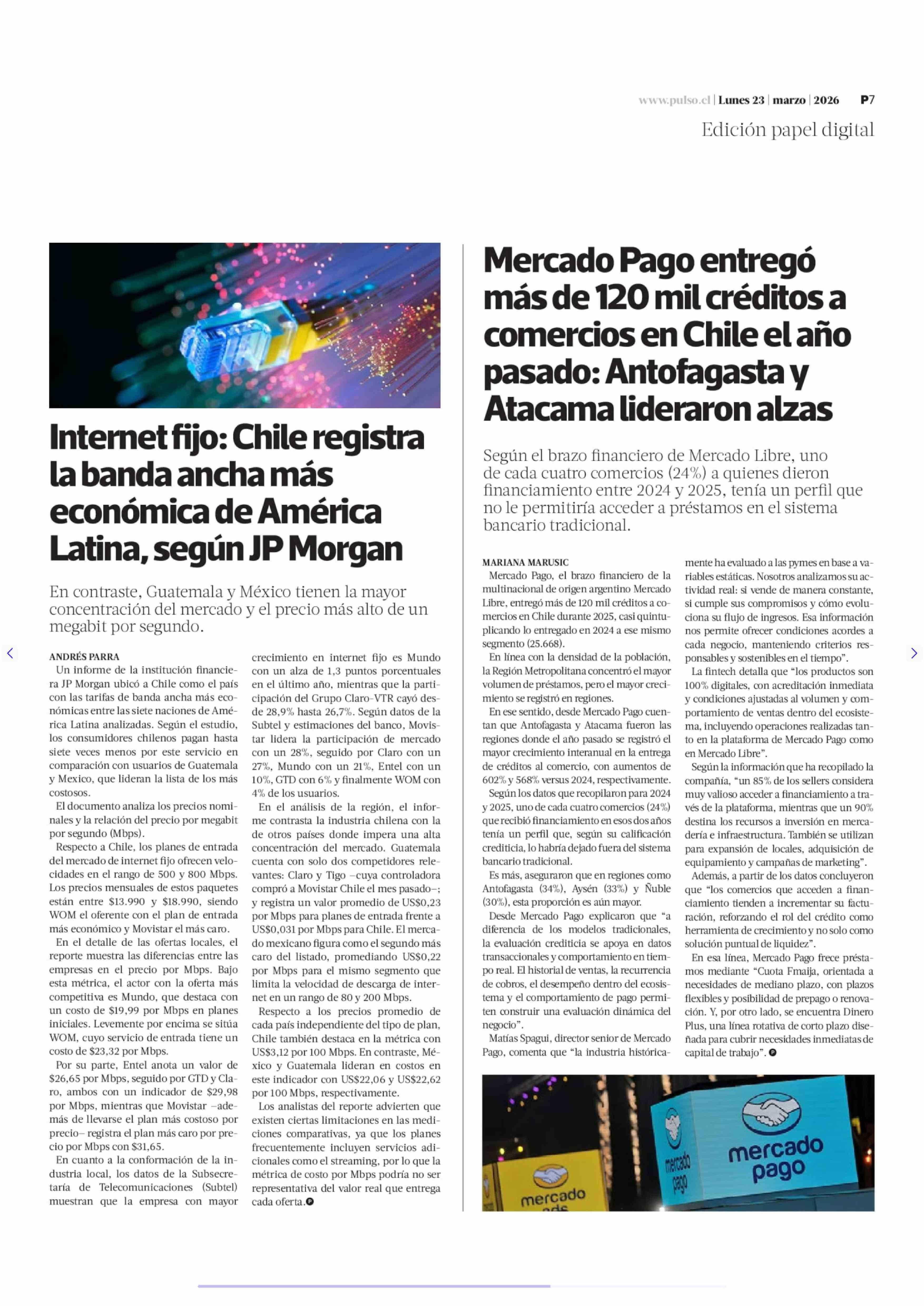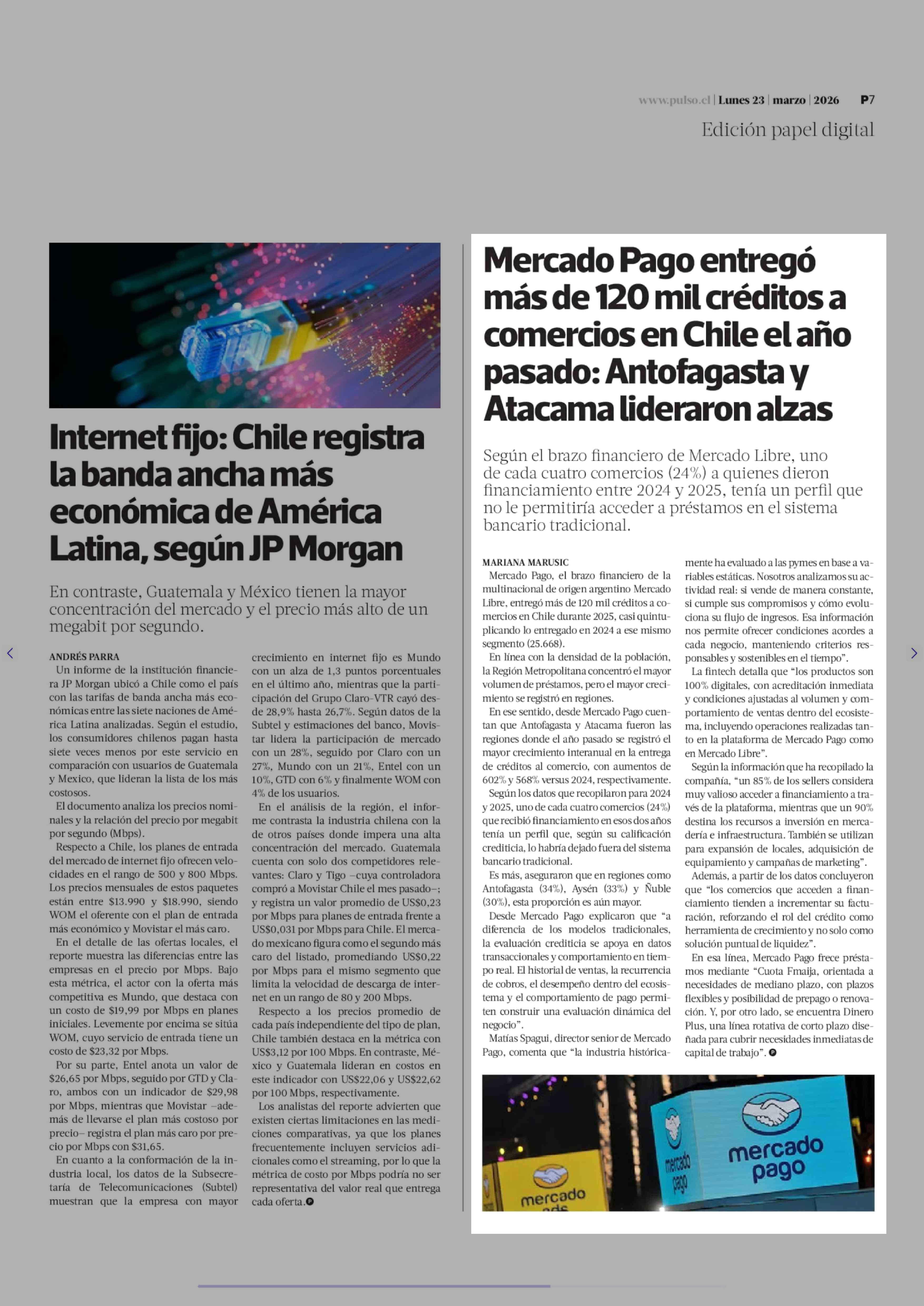 Título: Mercado Pago entregó más de 120 mil créditos a comercios en Chile el año pasado: Antofagasta y Atacama lideraron alzas